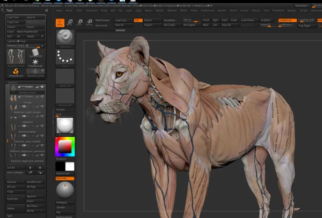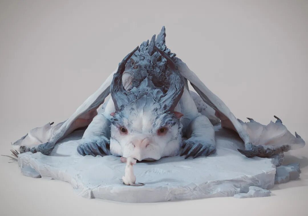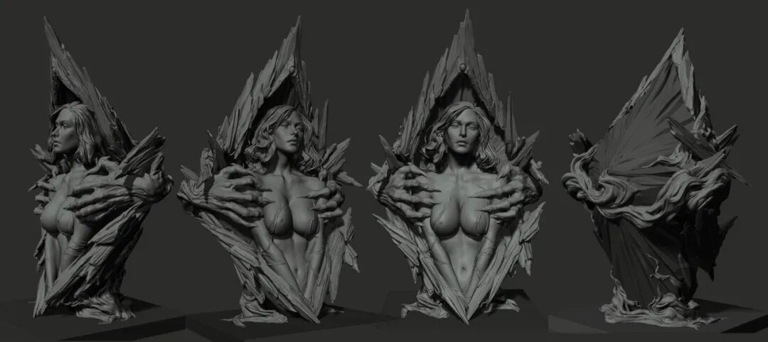 在她创作时主要会用到Maya、ZBrush进行雕刻