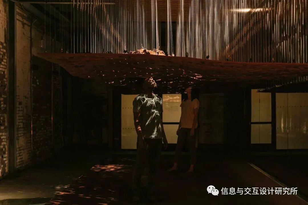 设计师在设计规划时,需要将空间场所、视觉图像、身体交互全部考虑进作品中,加上现实物理场域和虚拟场域的融合,才能构筑出具有有效身体感知的具身交互设计。观众才能在参观交互作品时更加具身化,以身体感知作品。这里通过体验来激发对自我、人类、人性的感知与思考点,观众在这个秘密工厂里既可以欣赏戏剧故事,也可以获得混合的艺术体验。