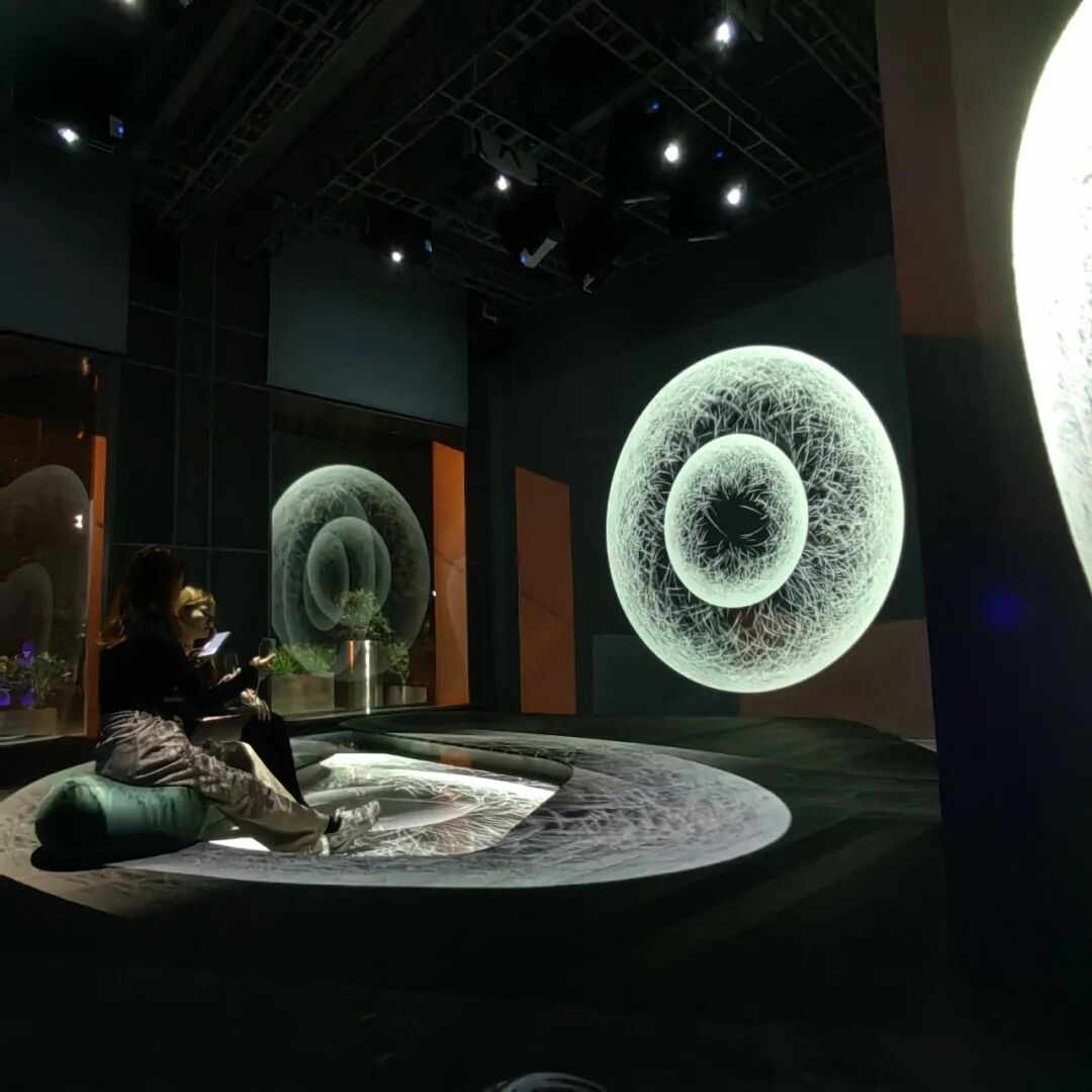 您的作品《流光》中使用“流淌的光线”在数字空间内构建了视听内容,能和观众产生实时感官互动。可以为大家介绍一下这一作品的创作思路和创作过程吗?