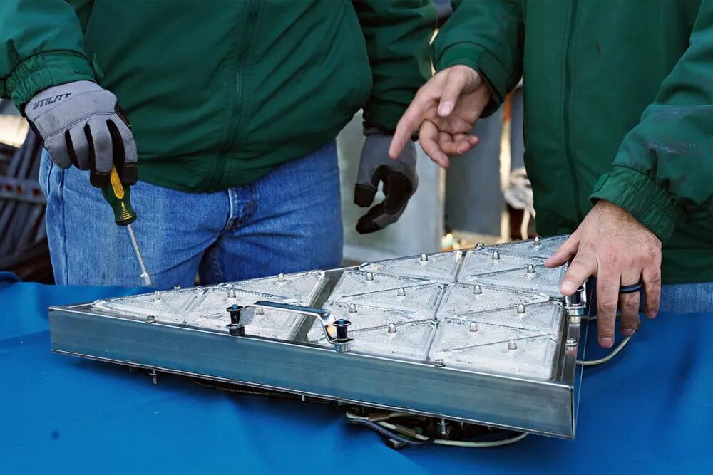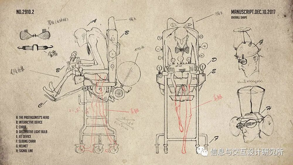 在结构设定上,设计团队考虑到这个穿戴装置身上有许多灯泡和驱动器,普通的移动电源不能满足几小时的能源供应,所以需要随身携带一个600W、80AH的电箱。于是将“康复助行车”的结构运用到了移动电箱上。