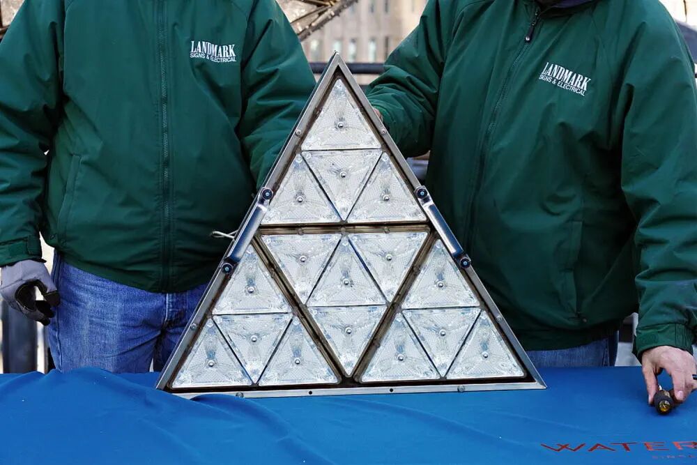 水晶球每一分钟内降落75尺,同时2022年的巨型数字灯也会被点亮。而为这个水晶球特别设计的水晶片图案,以“智慧的礼物”为主题。