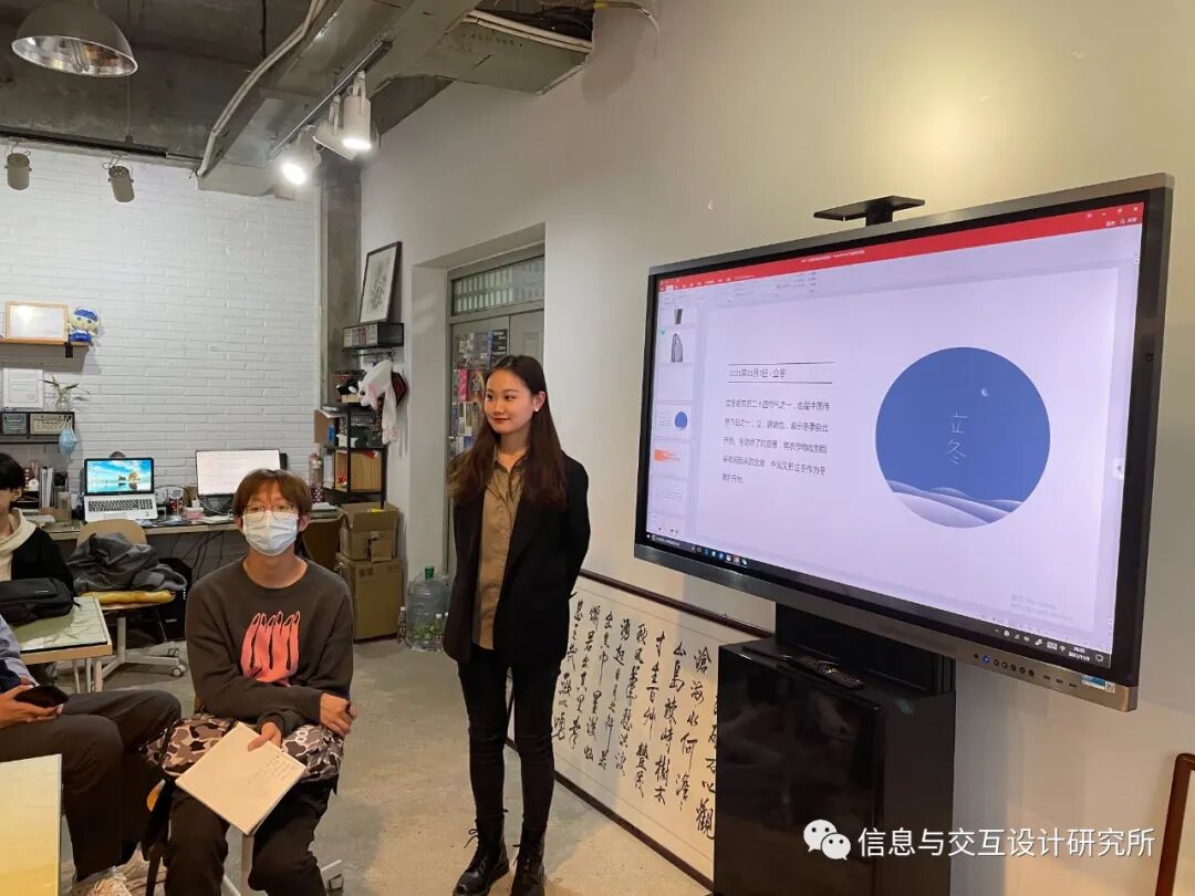 信息与交互设计研究所负责人胡珊老师详细地向新成员们介绍了团队的研究方向与研究内容,同时也向新老成员们阐述了团队的意义以及团队中每一位成员都应该肩负的责任与使命,希望大家都能树立正确的价值观,做一个有理想、有担当、充满自信的新青年!