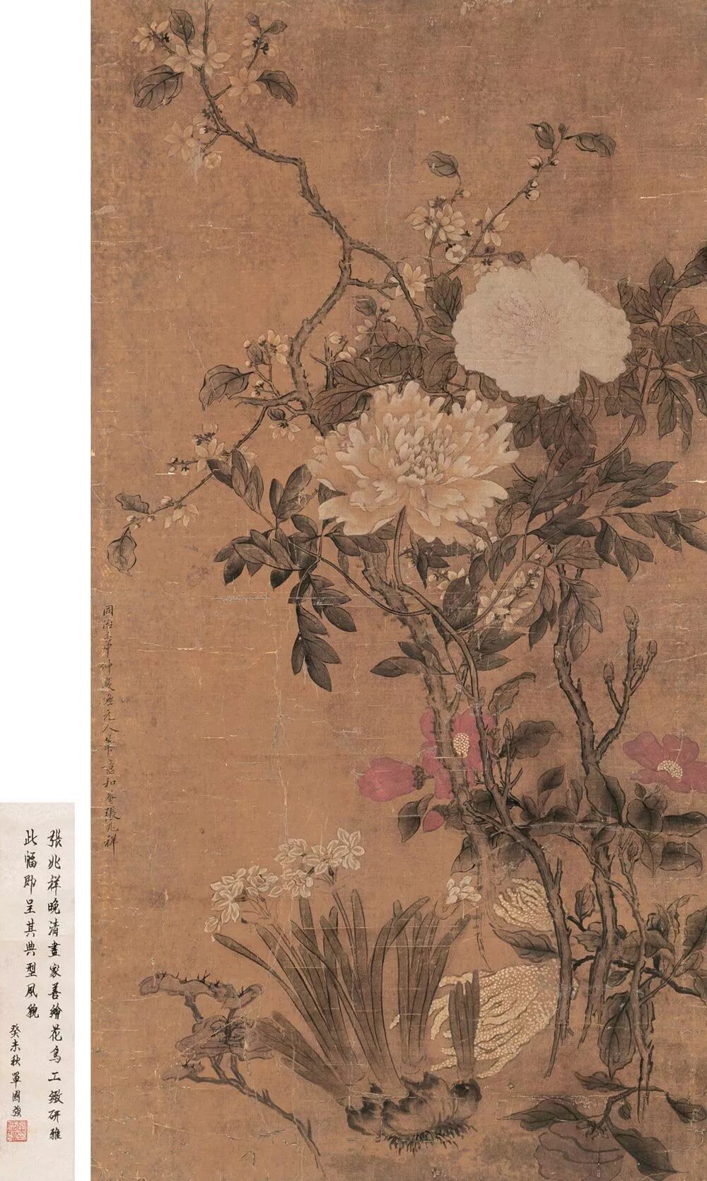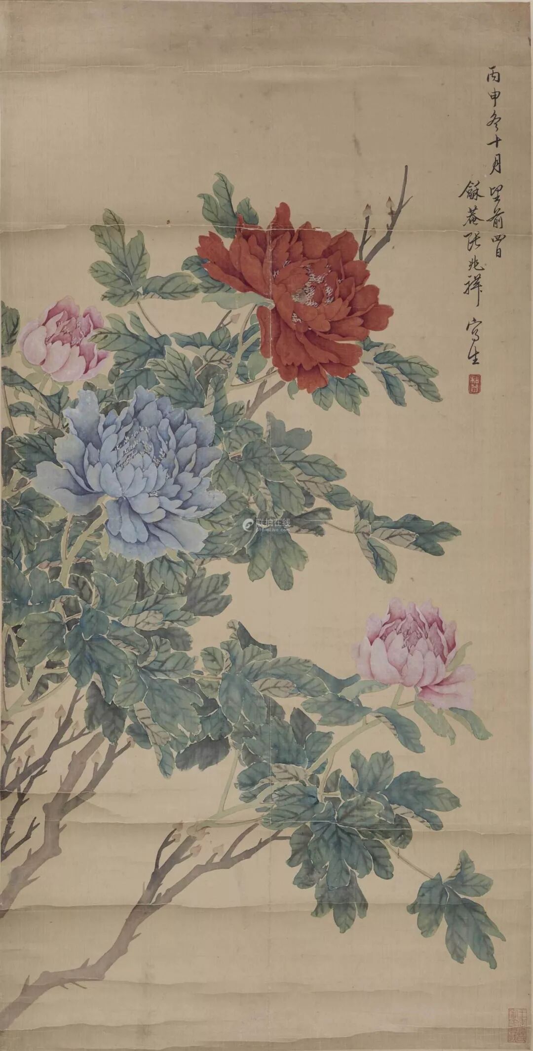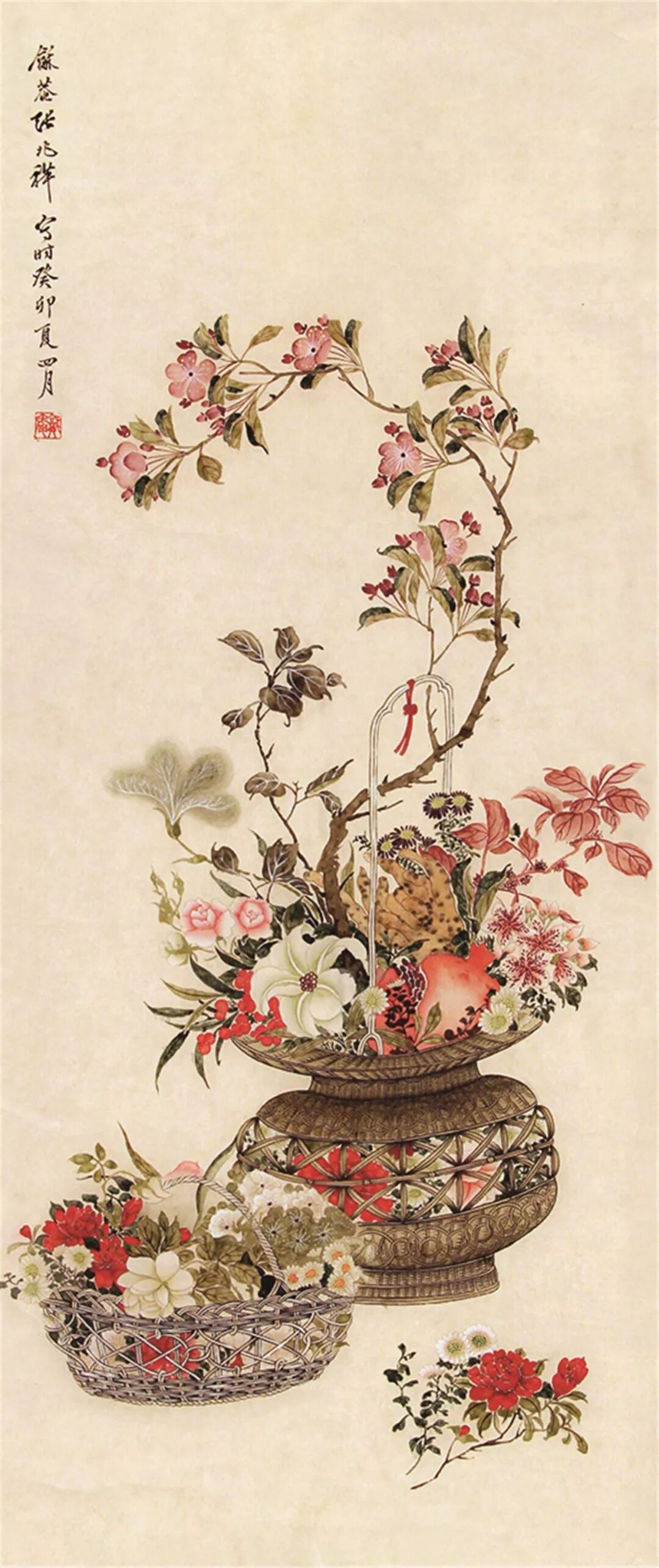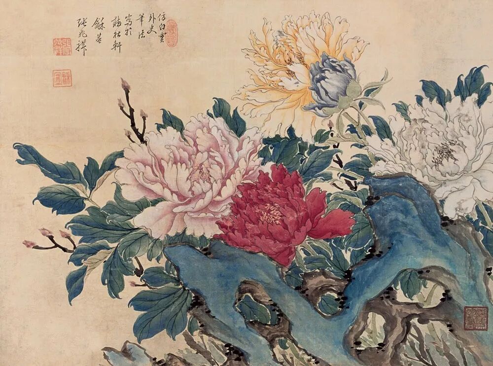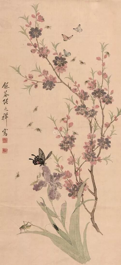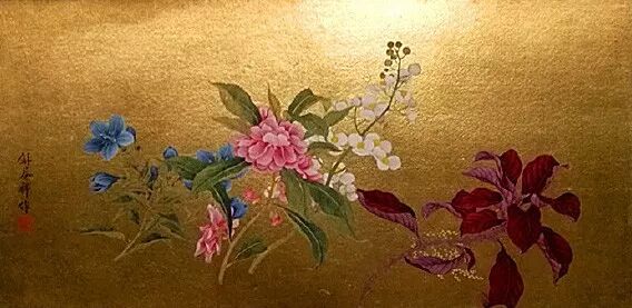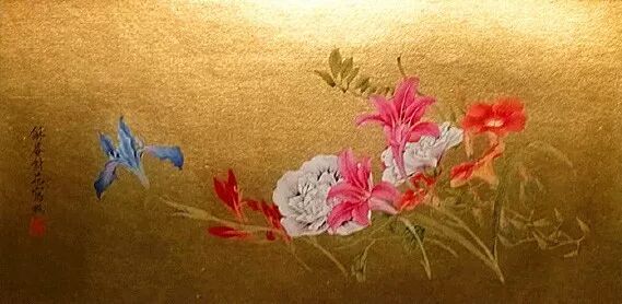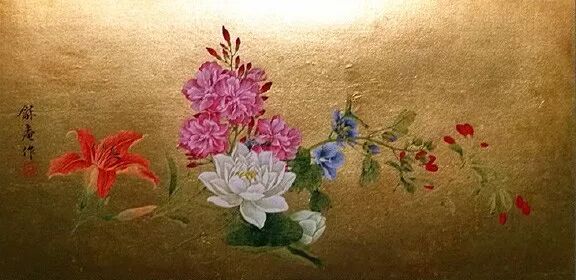 他的设色花鸟画,多有一种富贵祥和之气,姹紫嫣红,色彩绚丽,雅俗共赏,令人悦目。除工笔画外,偶尔也泼墨写意,笔墨间又透露出些许文人画的气息。