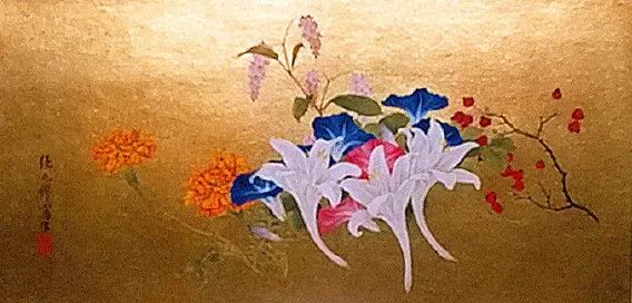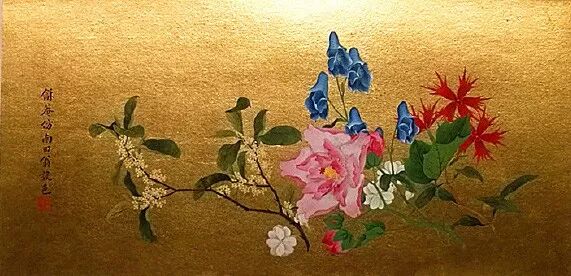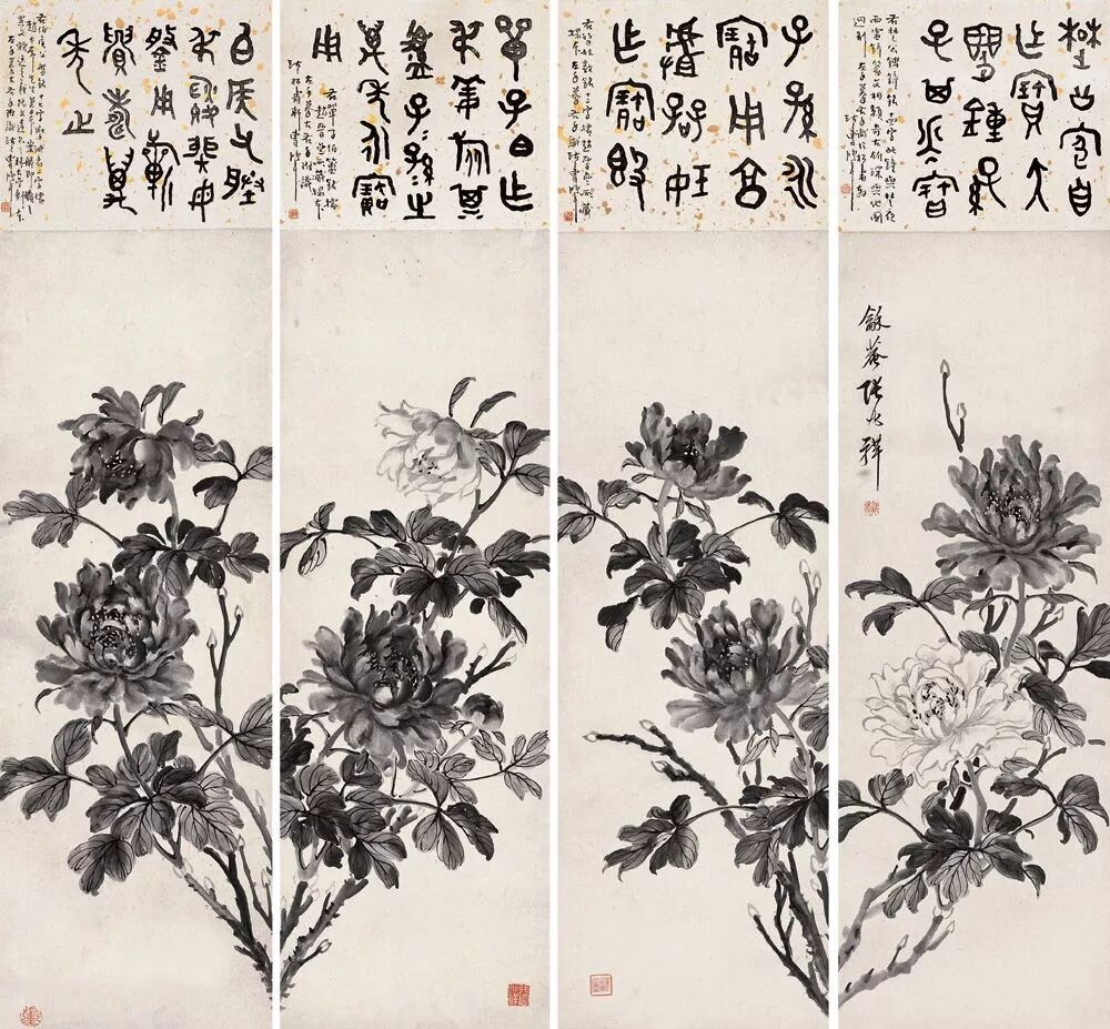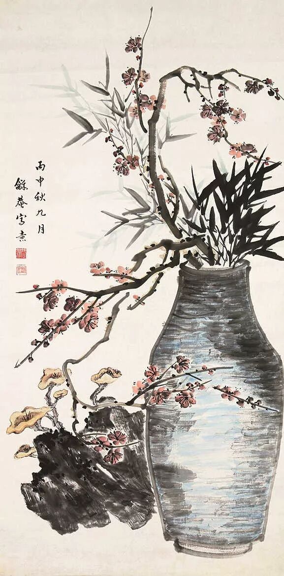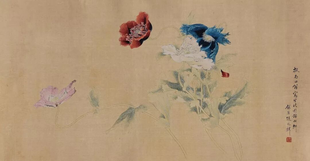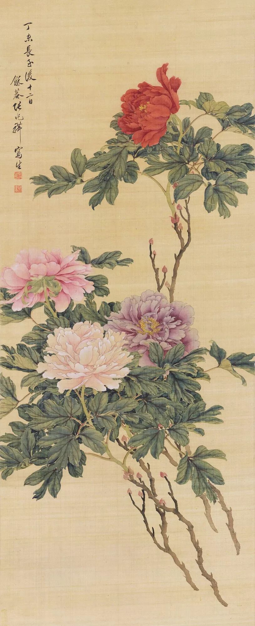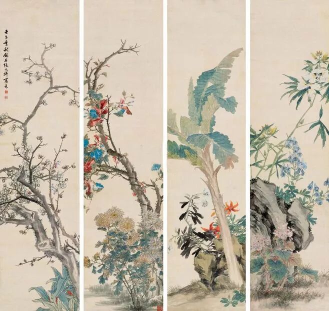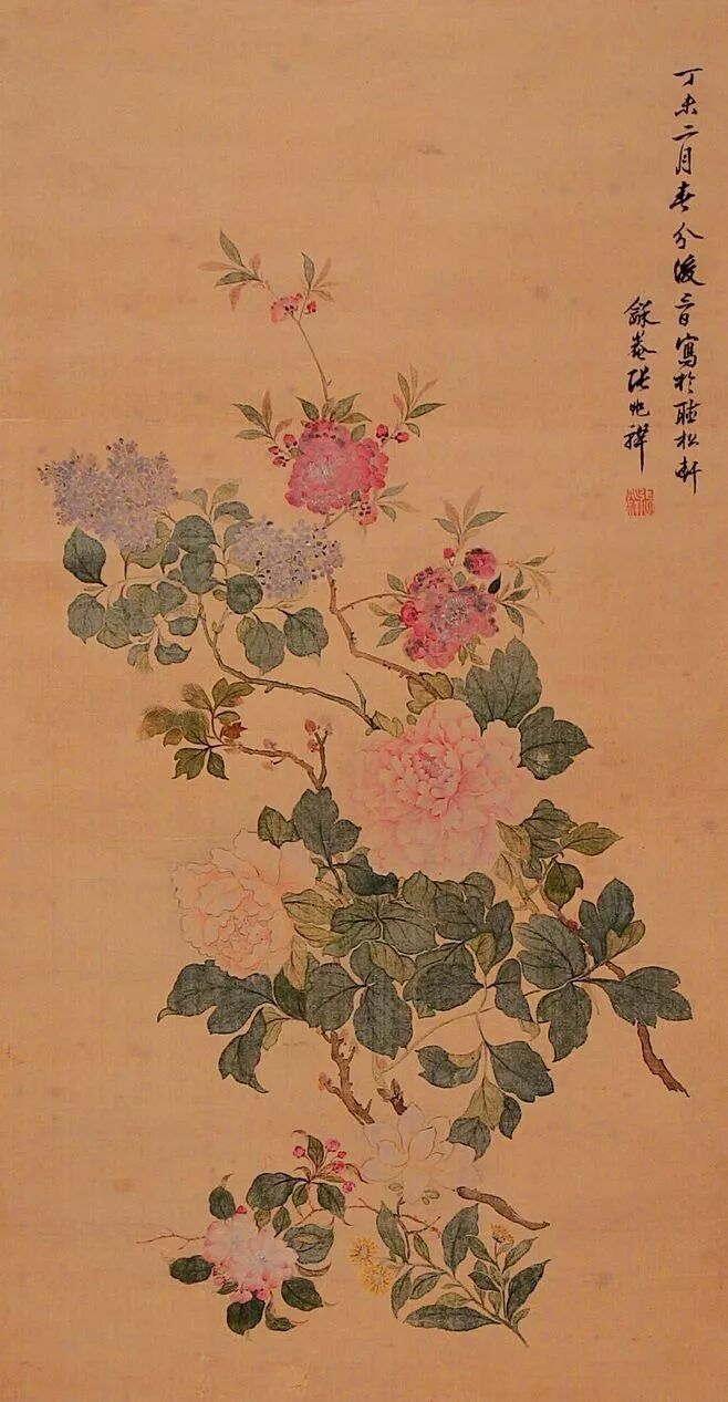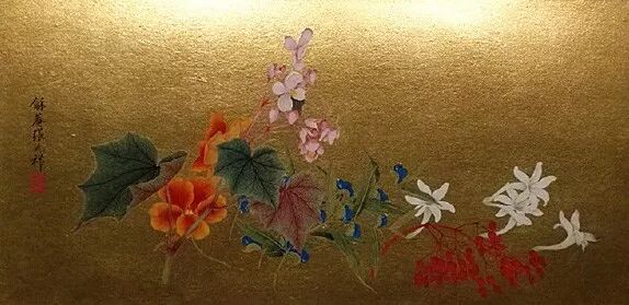 他的设色花鸟画,多有一种富贵祥和之气,姹紫嫣红,色彩绚丽,雅俗共赏,令人悦目。除工笔画外,偶尔也泼墨写意,笔墨间又透露出些许文人画的气息。