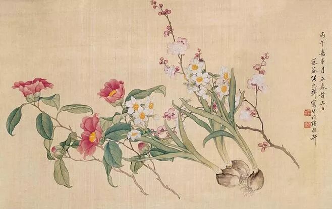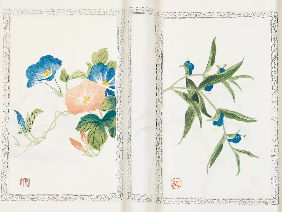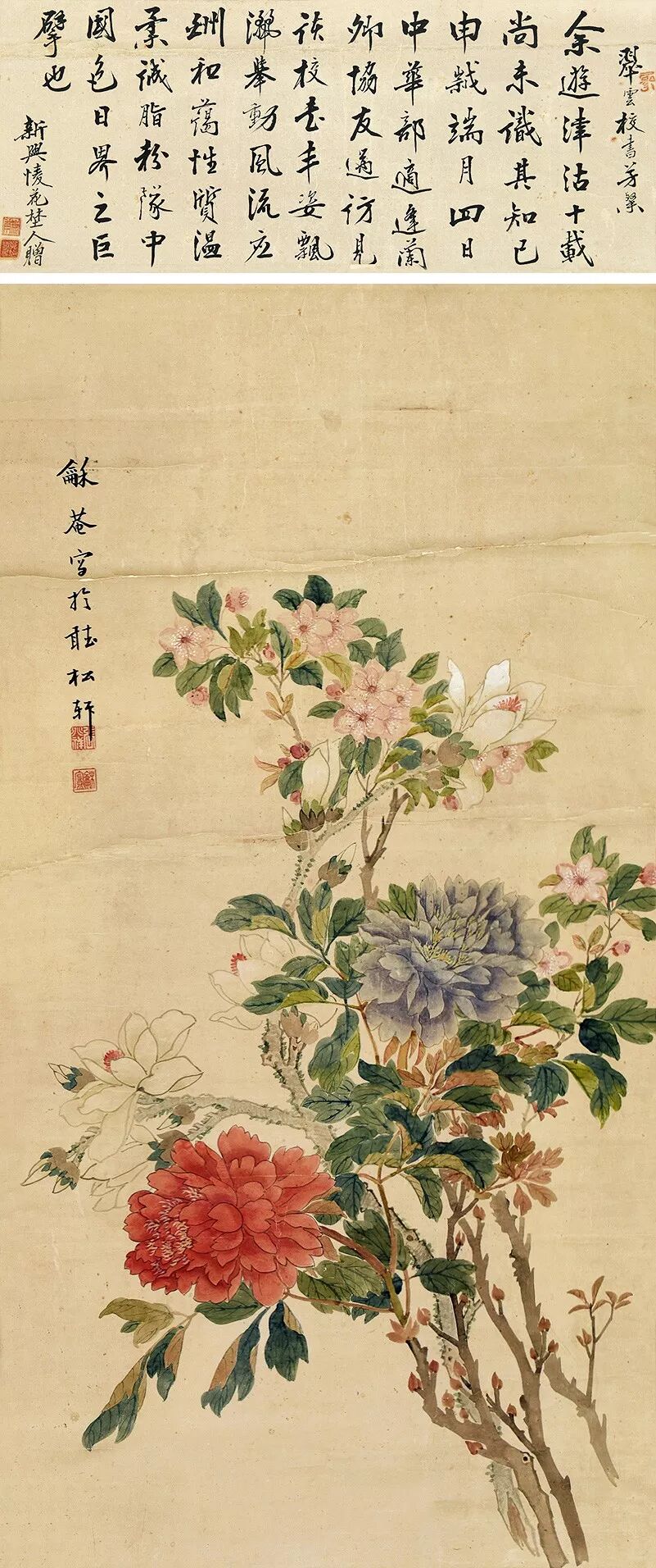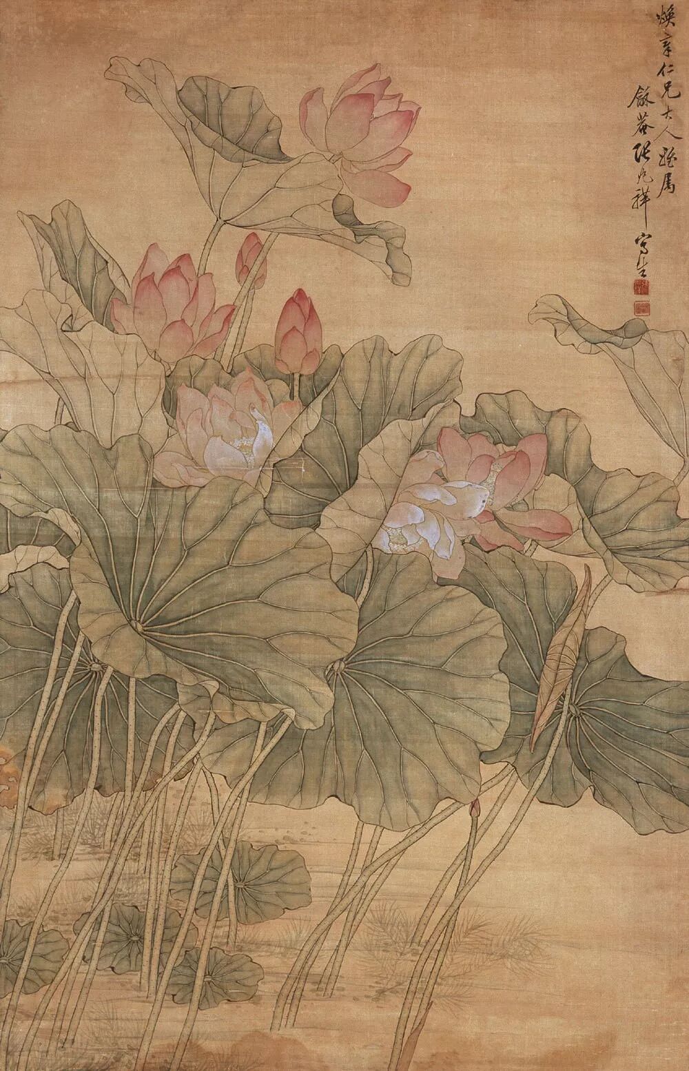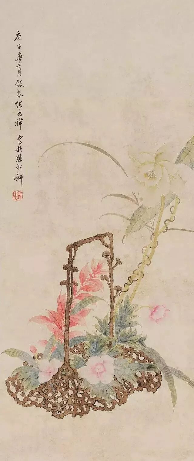 在颜料的选择上也十分考究,据说他曾短期受聘于如意馆,得到了一些赏赐,即民间部已得到的名贵颜料,颜色的制作也非常精细。