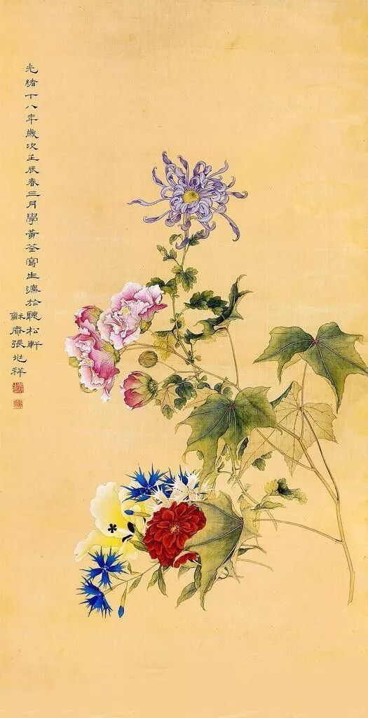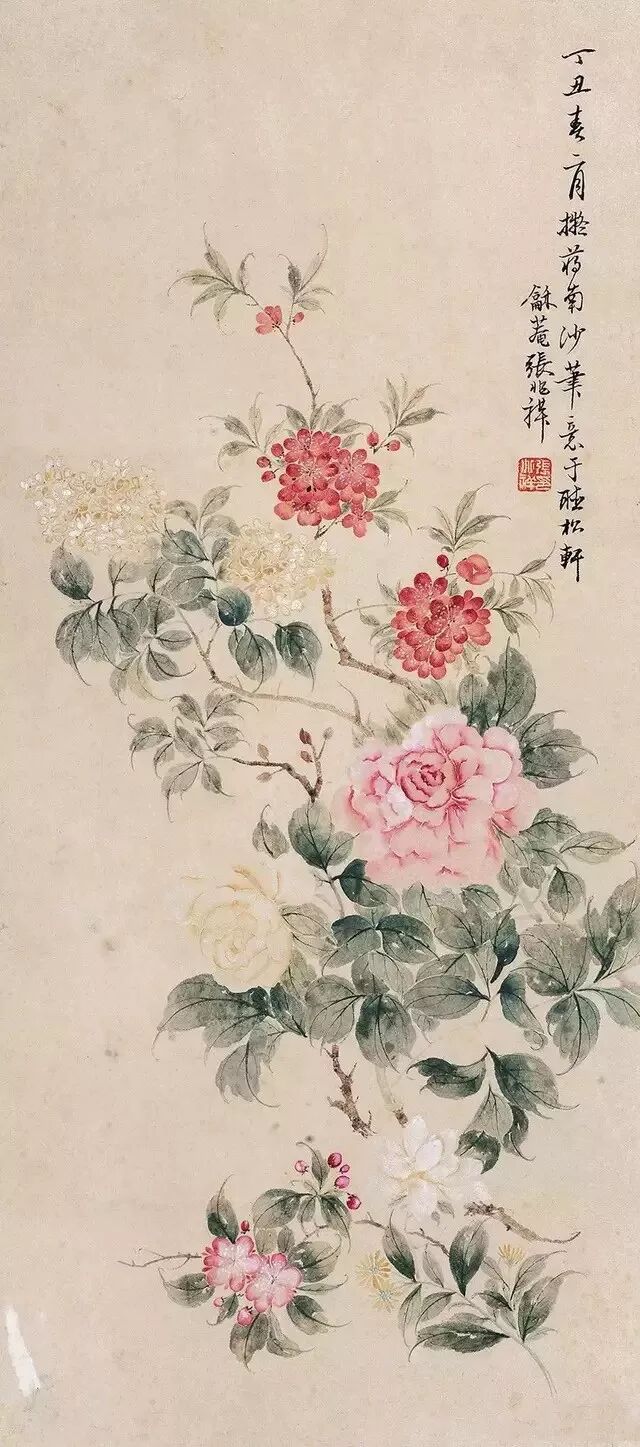 张兆祥是一个艺术思想较开放的人,既继承传统,也师法自然,相花写真,乃其特长。点写虽秀巧但毫不拘执,花之向背,枝之偃仰,萦纡高下,各自条畅,生机勃露,秀润动人。