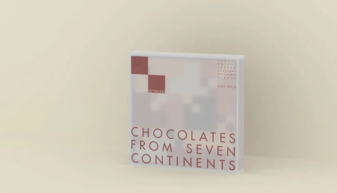 TETRICHO = TETRIS + CHOCOLATE | TETRICHO是一个充满趣味性的坚果巧克力品牌,它的包装灵感来自于90后的经典童年游戏——俄罗斯方块。采用来自世界七大洲的新鲜坚果作为原材料,TETRICHO致力于将最纯正的坚果风味保留在每一颗巧克力中。当你打开盒子时,会发现盖子内侧藏着一块小小的大陆地图,这代表了每种坚果的原产地。希望你喜欢这一份“发现新大陆”的小惊喜。另外,坚果风味的巧克力饼干作为TETRICHO的延伸产品,是每一个甜味爱好者不能错过的美味!