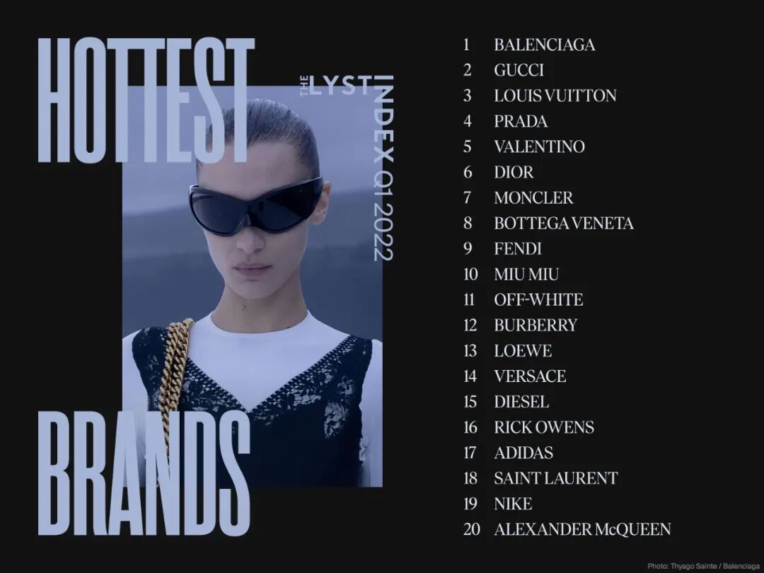 图:Lyst2022年第一季度的20大热门品牌