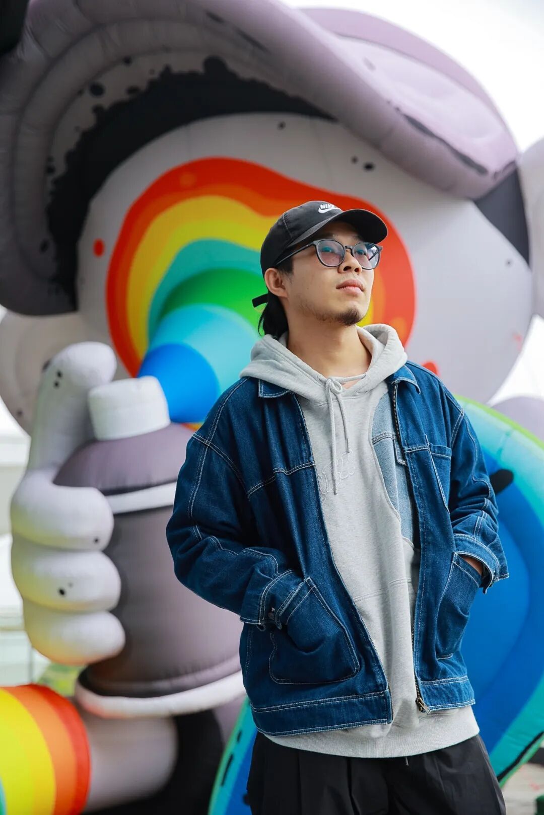 毕业于广州美术学院雕塑系的潮流涂鸦艺术家骆宗杰,创作的作品却不限于雕塑、气模、涂鸦、玩具、插画、动画、多媒体等多种形式。他带来的《肖像与雪糕系列》《何B仔小品画系列》以及何B仔涂鸦,分别以3D、国风的形式与街头涂鸦相结合,创造出独具个性的艺术风格。他说“每个人都有自己的风格,融合就像一个游乐园,会创造出五彩斑斓的趣味景象。”