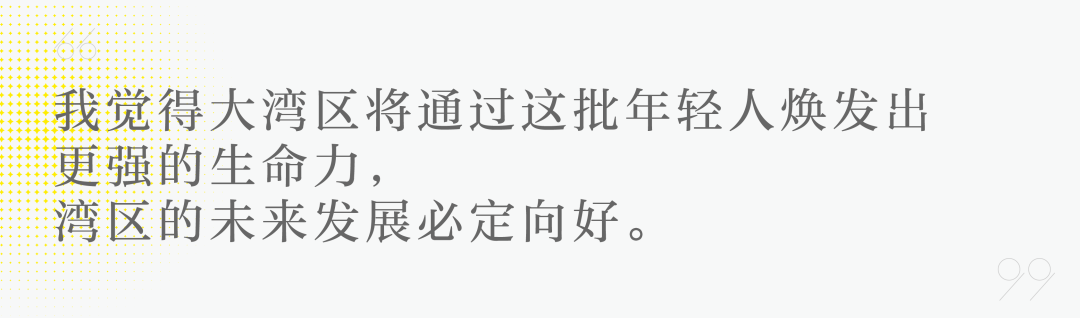 “我觉得大湾区将通过这批年轻人焕发出更强的生命力,湾区的未来发展必定向好。”他更希望基于湾区的开放和包容性,大湾区的文化艺术走向国际,共同提升。