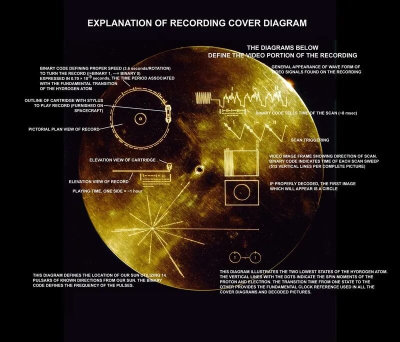 在⾦唱⽚表⾯刻着各色形态的符号解读唱片的使用方式,以原始的图像与不同文明进行交流。画册亦通过数字化合成的设计⼿法,通过创作设计多种肌理,表现出新的视觉体验。