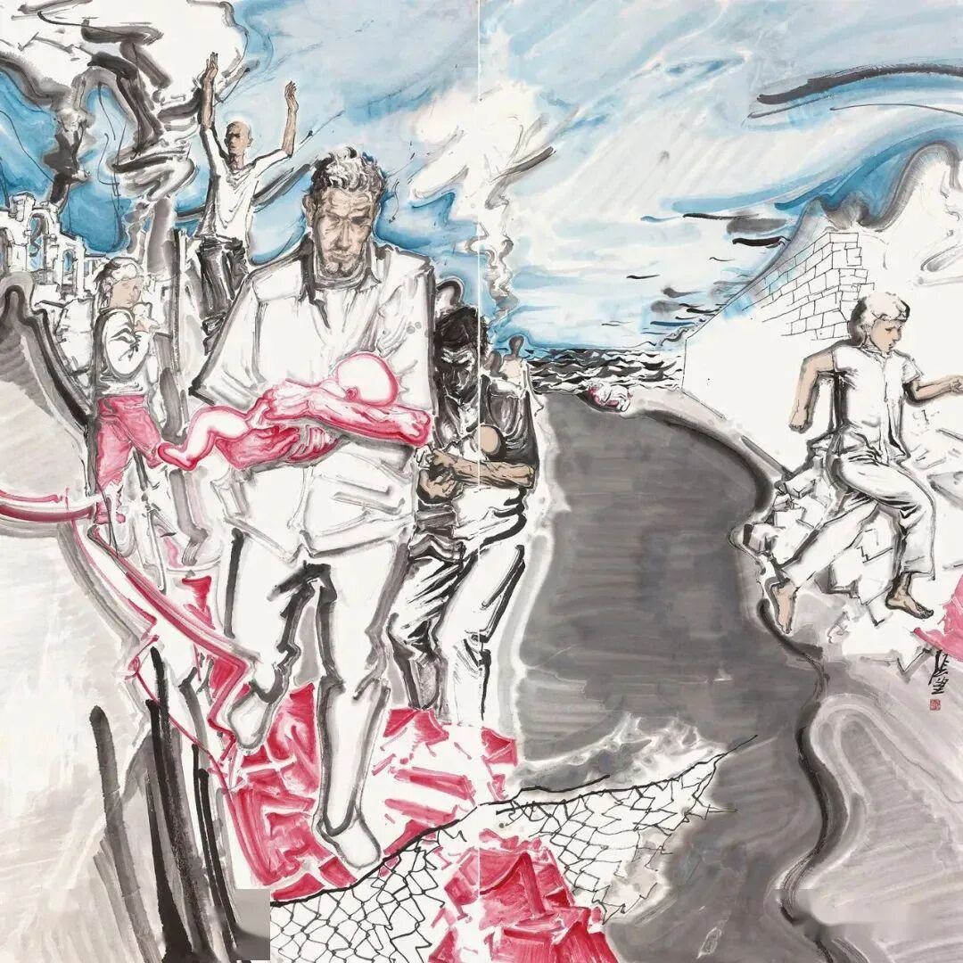 张望认为,作为中国传统的感性文化样式,水墨一样能表达世界问题。问题是有没有勇气打破只停留在关注自身文化那一块儿上的禁锢。他要在《地中海》系列创作中以水墨的表达,去思考中国文化之外的文明及人性,去思考人类的苦难。这是张望以新的视角审视世界,实践当下水墨表达的作用。