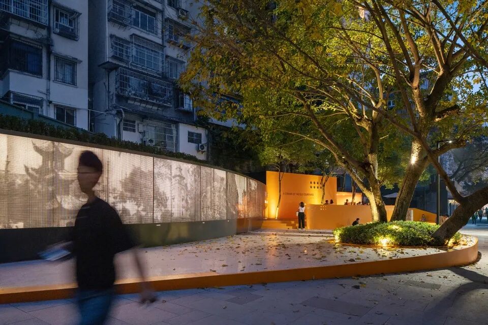 通过设计的手法进行升级的同时,让整个空间更富有层次,变成一个积极性,包容性,多元化的空间,在延续原有居民生活方式的同时,能够吸纳更多年轻人进入空间。把原有的,不能动的防滑桩和用混泥土浇筑的沼气池,以及很多杂乱的管线,在立面上采用铝板包的手法,使其变成类似于穿孔板形式的剧场文化墙。