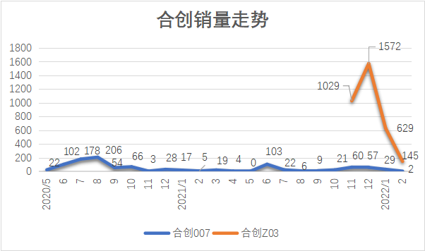这个品牌有多“小众”,其首款量产车型合创007上市近两年,总销量也仅有1013辆。在EDG夺冠后,凭借“冠军座驾”的名号其新款车型Z03的确迎来了一波高峰,不过当热度褪去,销量便急速下滑,从1500+掉到145辆合创仅用了一个月。