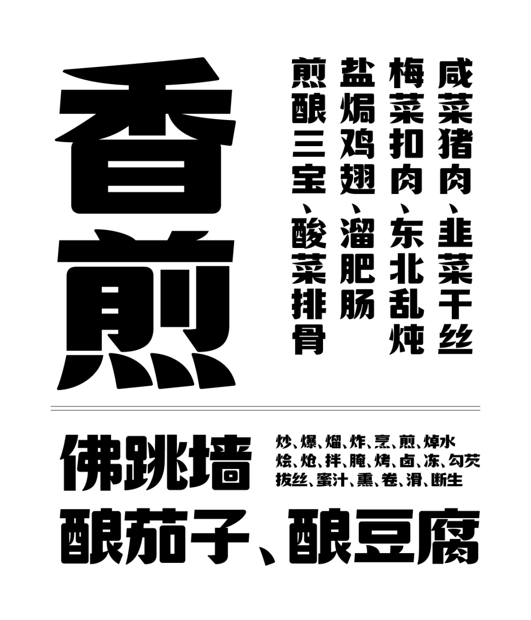 胡晓波香煎体是我们工作室打造的一款美术标题字,对比起来,要比之前的香辣体更简约。香煎体的笔画厚实,字型饱满,字面较大,工整稳重,细节处理也是十分严谨,整体上完全就是美观大方和轻松的感觉。