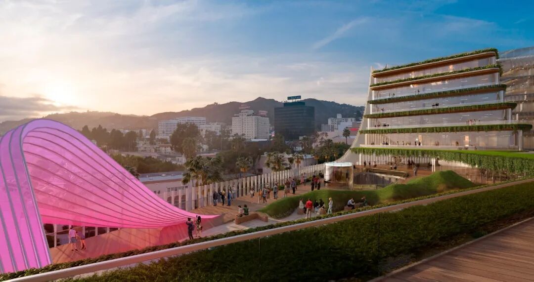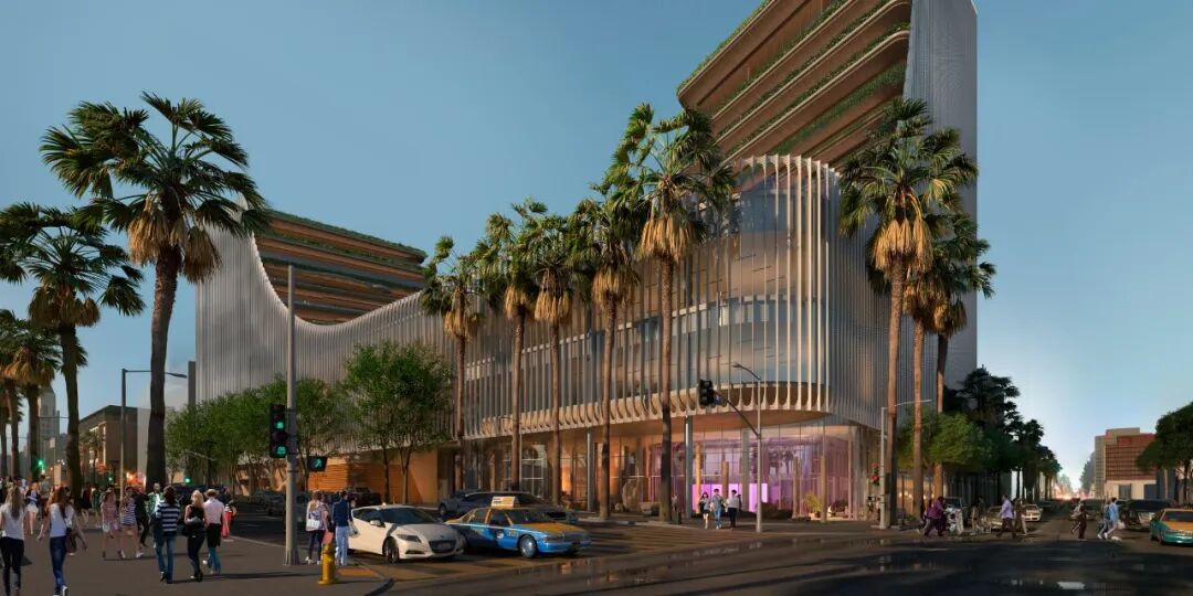 HKS设计的CMNTY文化中心受到《洛杉矶时报》等多家媒体报道,引起轰动。该中心造价5亿美元,由好莱坞著名音乐人持有,是集录音中心、创意办公、剧场、培训中心、娱乐配套等功能于一体的大型办公综合体。