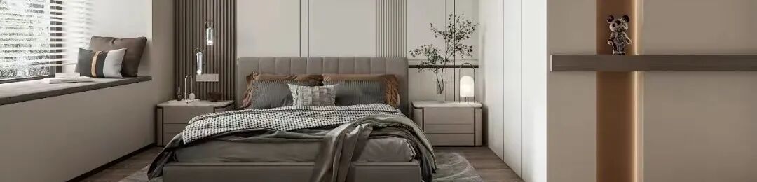 The master bedroom has chosen a more stable color scheme. The background wall of the bedside adopts the color contrast combination of beige+dark coffee headboard, presenting a peaceful and harmonious atmosphere as a whole; It is separated from the main bathroom space by a round arch, which increases the sense of visual hierarchy and makes it more warm and design in simplicity.