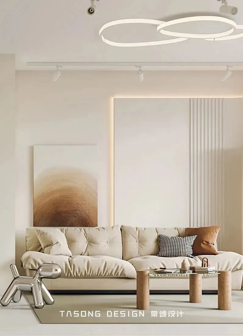 The single caterpillar forms a good color link with the cloud sofa pillow and the decorative painting of the background, which makes the living space more warm. Coupled with the warm lighting atmosphere on the background wall, the feeling of happiness arises spontaneously.