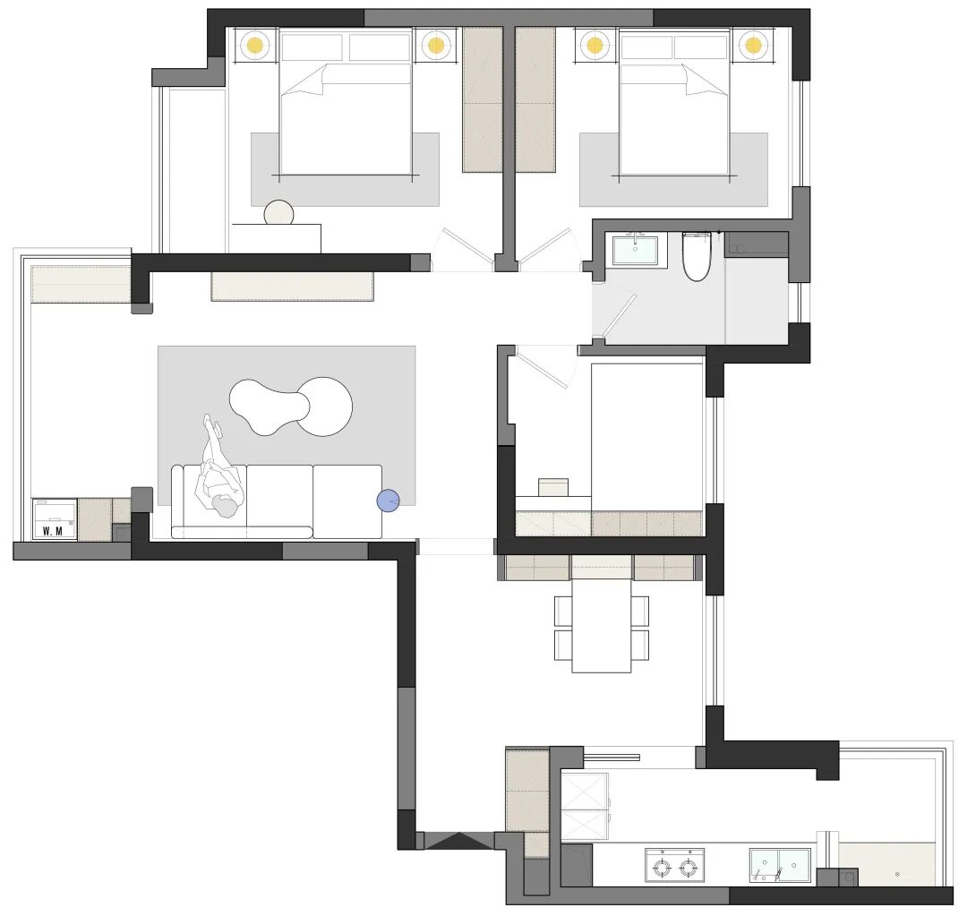 三房的格局,保留一间房间做为功能房