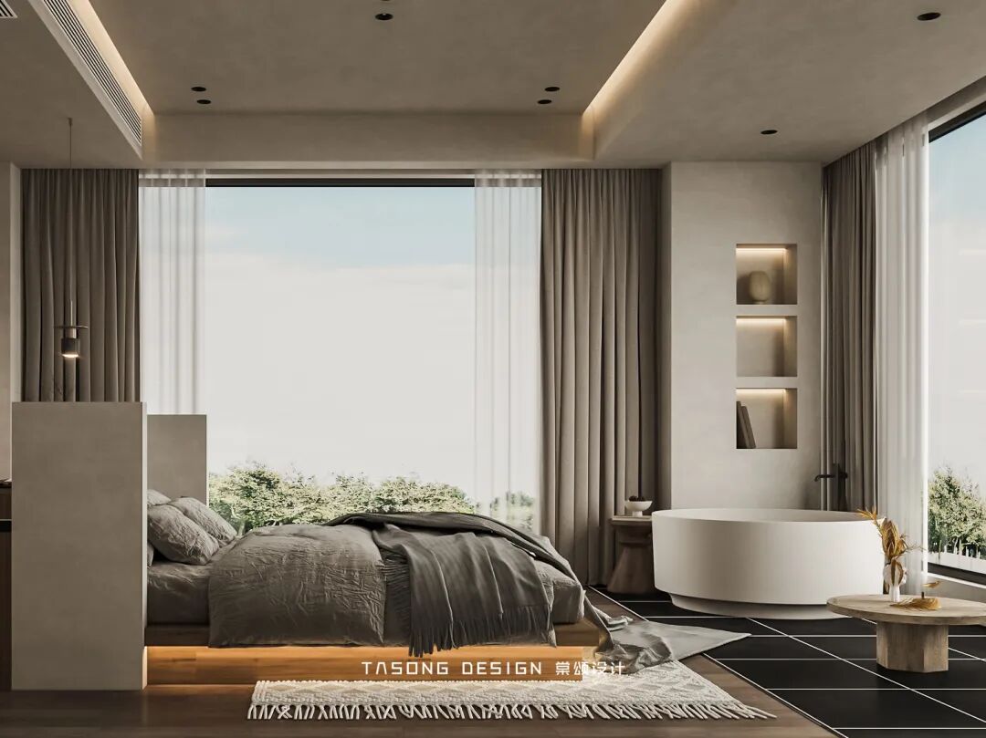 选择一间拥有大落地窗的房间,躺在床上,放下手机,望着星空,拥着爱人畅想着未来的光景,久违的试着早早入睡,梦里也许会是属于自己的童话世界,窗帘留下一点缝隙,让清晨的阳光将你唤醒,或许我们早已忘记这是一种什么样的体验。