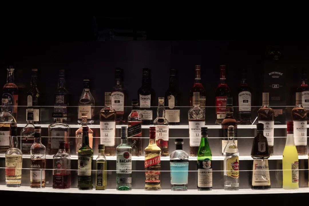 △环形高吧台既满足客座,又辅助现场调酒师的出品