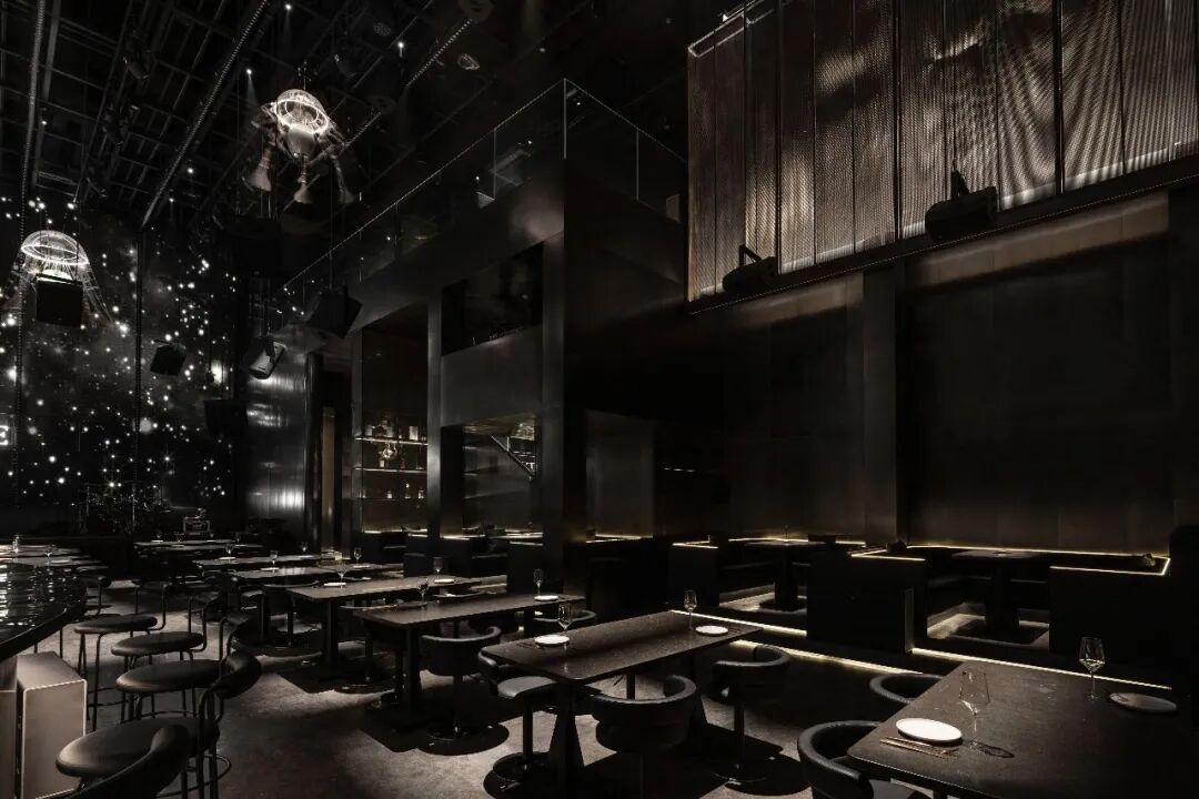 不同时段的用餐体验和情景创造是设计师贯穿始终的设计思考。通过视觉、听觉及味觉向人们传达出“沉稳的黑金调性”、“自由的韵律感”以及“新式餐吧文化”等理念。