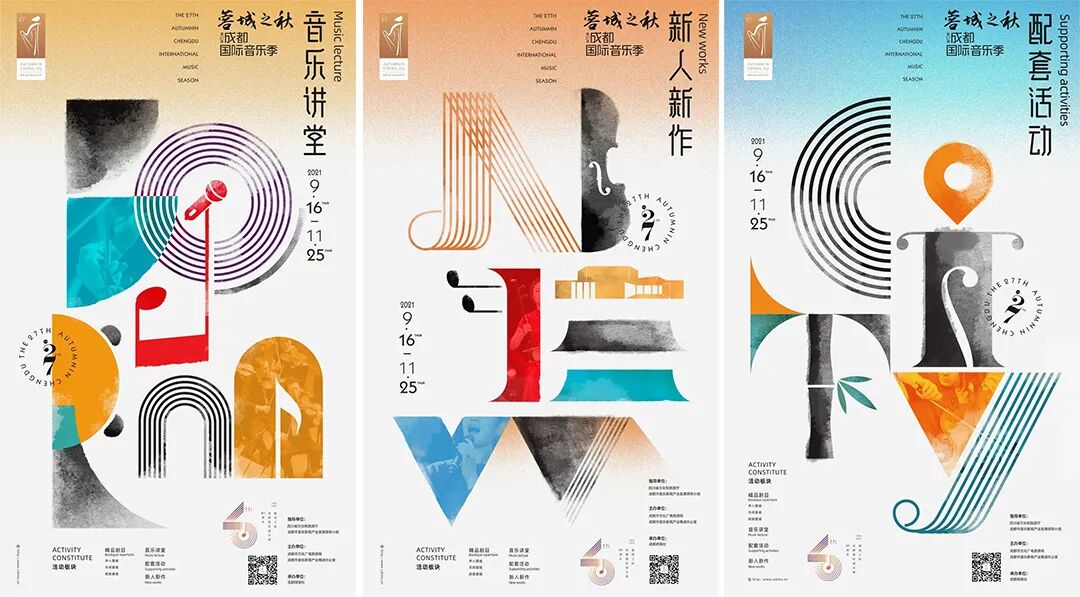 除此之外,发布的海报中还包括精品剧目展演、原创音乐作品、配套音乐活动等板块作品,风格也与主视觉相统一。