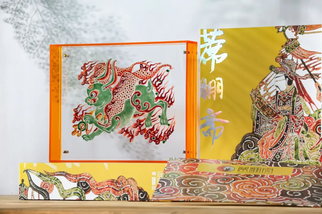 另一方面,黄色在陕西皮影艺术语义中有着独特的象征性,一般多用于皇帝角色及相关影件,龙袍、龙桌龙椅、龙旗等以黄色为主,而在其他官员及辅助角色的色彩搭配上很少使用黄色。因此黄色便被赋予了高贵、富丽、繁荣等语义。我们在做皮影相关的文创产品设计时,也多具有一定的“礼”的属性,因此黄色所代表的文化寓意也更加强调了这一特点。
