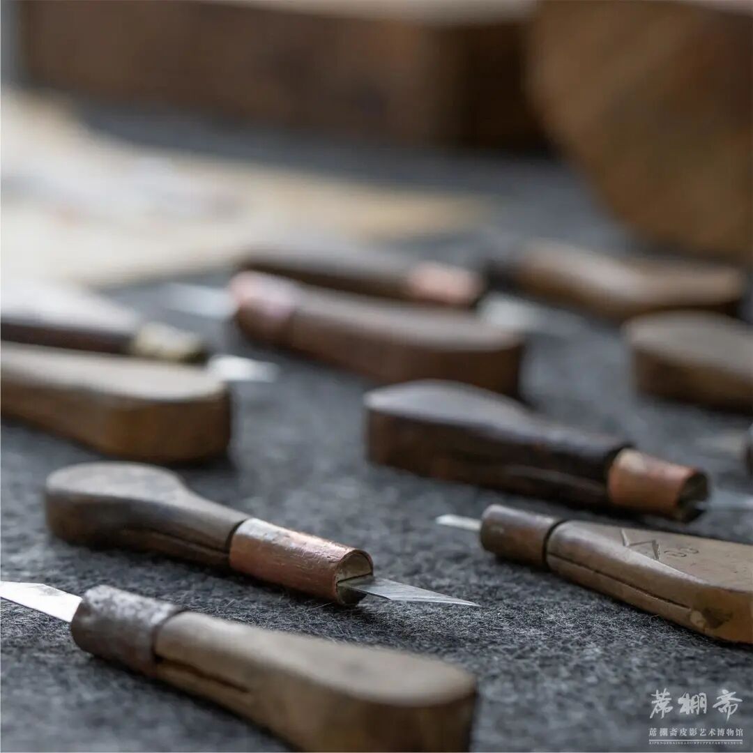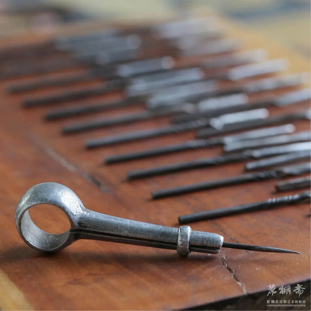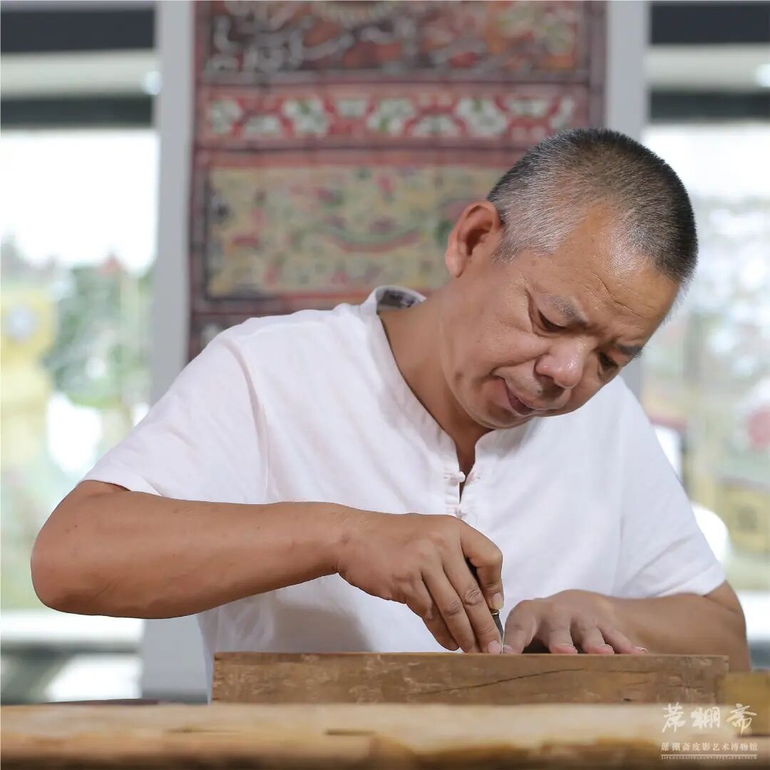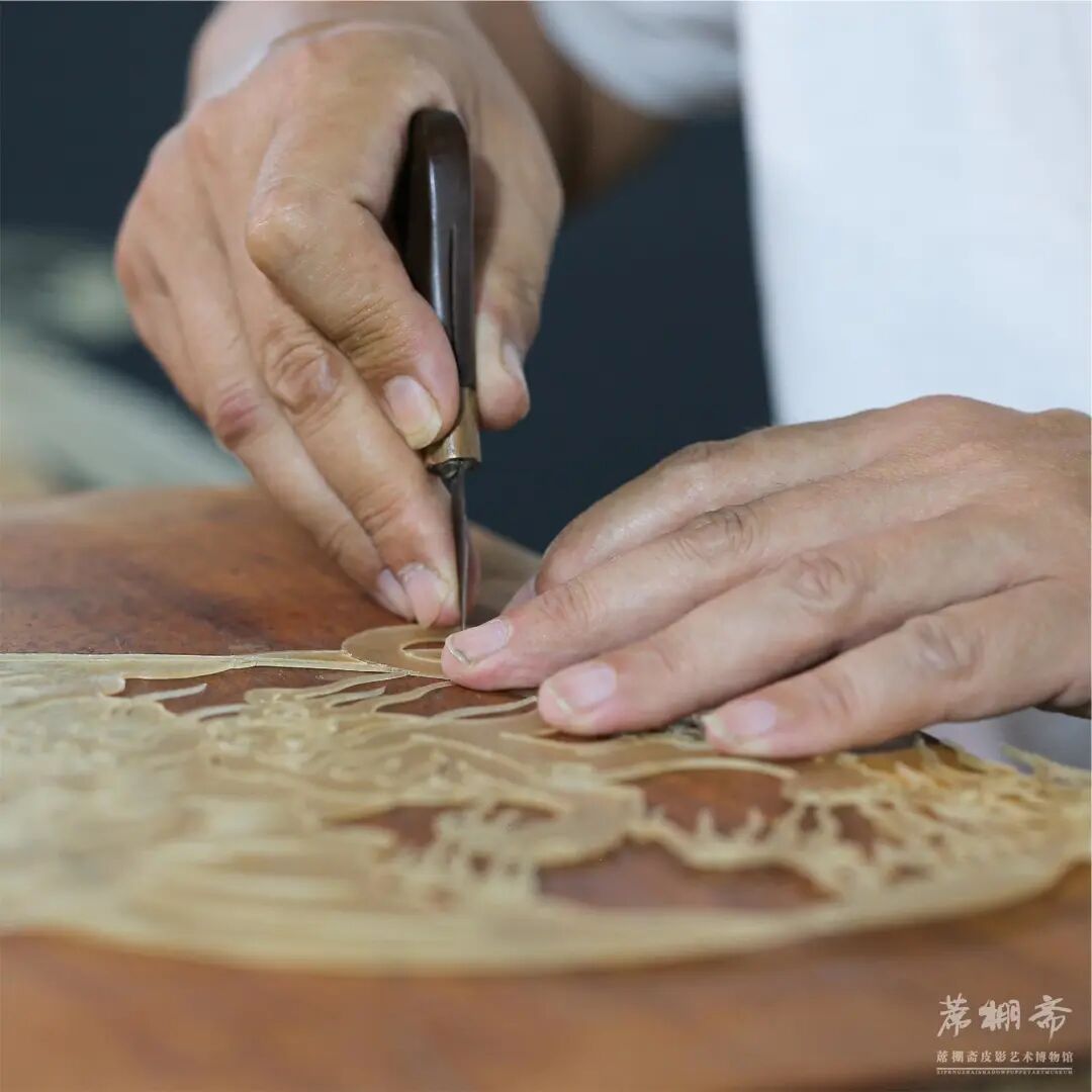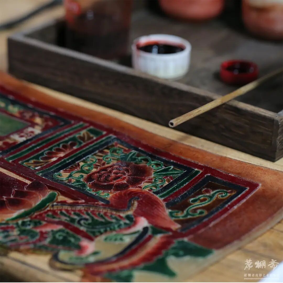 技法表现:该套作品以陕西华县皮影传统制作工艺为主,雕刻采用“推皮走刀”的传统技法,正反刀法相互结合。色彩以牛皮胶熬制而成,后采用传统“脱水发汗”工艺进行固色,使得色彩浸入皮质内层。