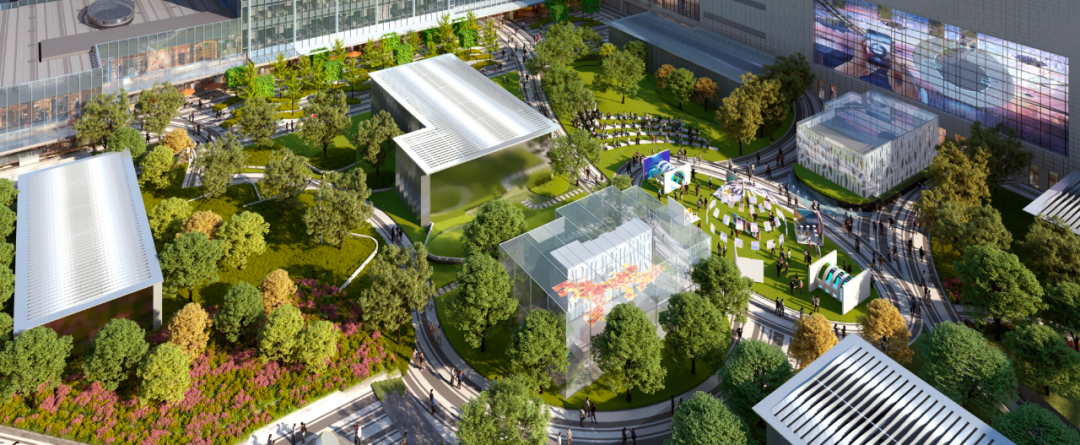 首先是视觉层面的舒适性——通过大面积绿植景观的设计,让综合体各业态都能与生态空间相得益彰;