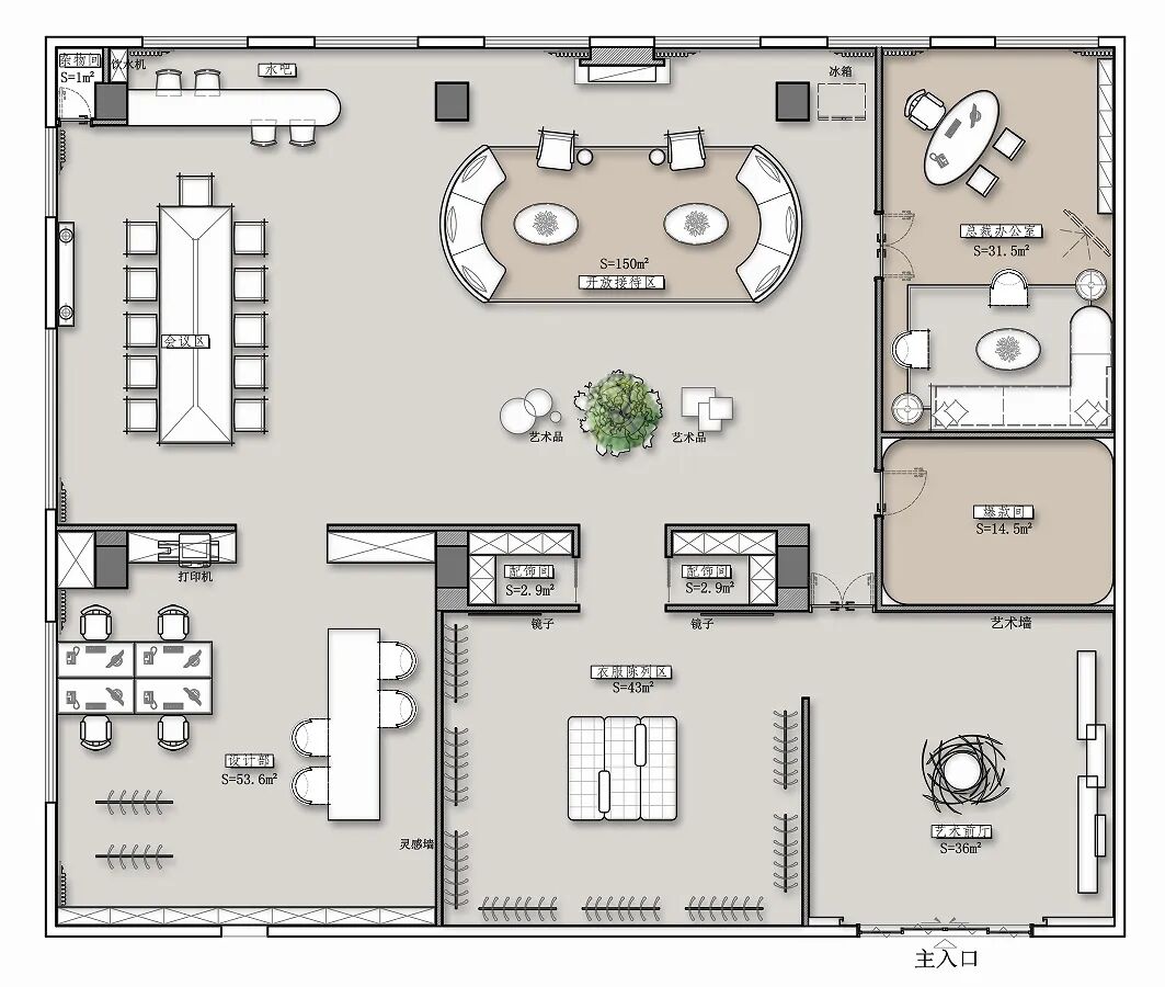 4、回复“平面”,欣赏更多办公空间平面布置;
