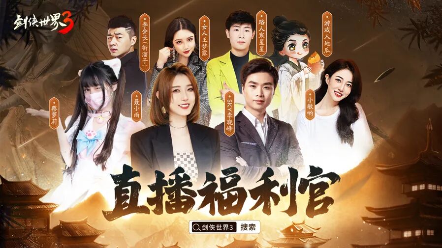 在公测时,《剑侠世界3》则更希望对泛用户进行破圈,重心放在了业内已经多次验证过的代言人营销上。相比于直播,代言人营销更适合用来打出品牌效应,代言人也会影响到后续的具体操作,以及营销覆盖的范围和层次。