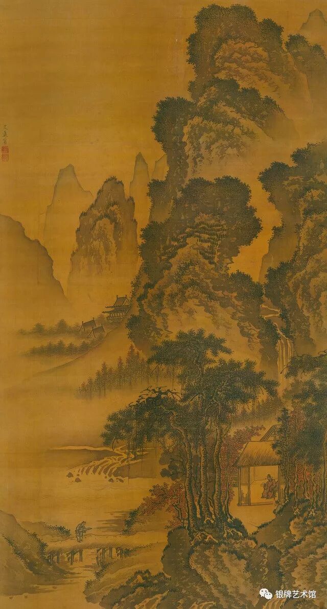 《溪堂诗意图》画面上描绘的是崇山峻岭,虬松遍布,茅堂临溪,后倚飞瀑,中藏寺观,得深山幽居之趣。