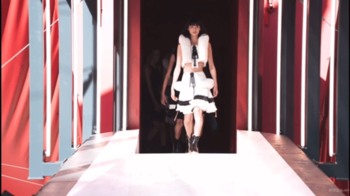 秀场邀请了法国当代著名艺术家菲利普·帕雷诺(Philippe Parreno)和制作设计师詹姆斯·钦隆德(James Chinlund)创作了布景——诡丽的 "monster-flower" 。