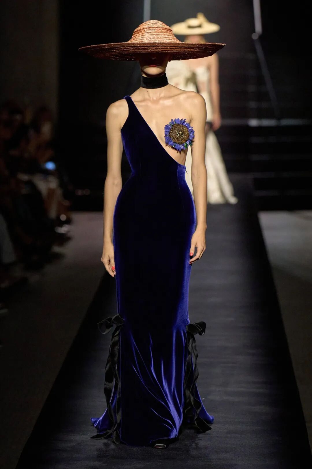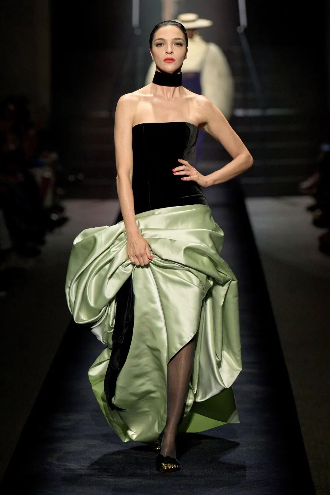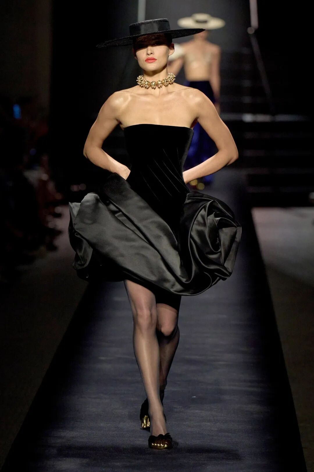 回顾展中还展示了Yves Saint Laurent、Azzedine Alaïa、John Galliano、Christian Lacroix等大师为Schiaparelli设计的作品。在本季的Schiaparelli高定系列中,Daniel Roseberry采用了“与深受Elsa Schiaparelli启发的人们交谈”的理念。今年早些时候,Roseberry还与Christian Lacroix本人进行了面对面的交谈,系列中丰富膨大的廓形裙摆、羊腿袖、闪亮的斗牛士刺绣和帽子,也致敬了这位大师,以及美好怀旧的80年代。