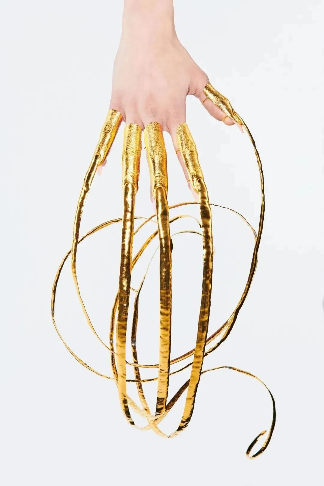 2019年4月24日,Daniel Roseberry正式接任Schiaparelli创意总监一职,在他任职期间,每一份答卷都令人惊叹。细数起来,Daniel可能不止是一个出色的服装设计师,还是一个令人惊叹的艺术家。他的设计十分有看头,因创始人Elsa当年看重钟表的装饰功能,Daniel就将手表造型做成耳环;以及Elsa在30年代创作的与金手指配套的腰带,Daniel也以此为灵感制作成为2D延续。