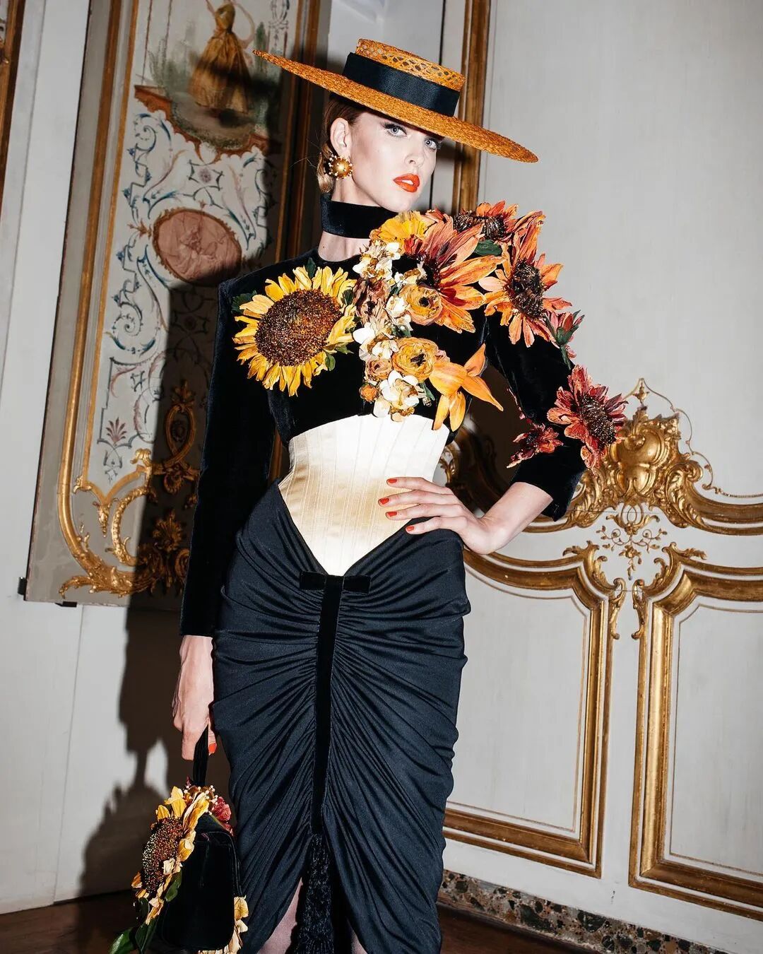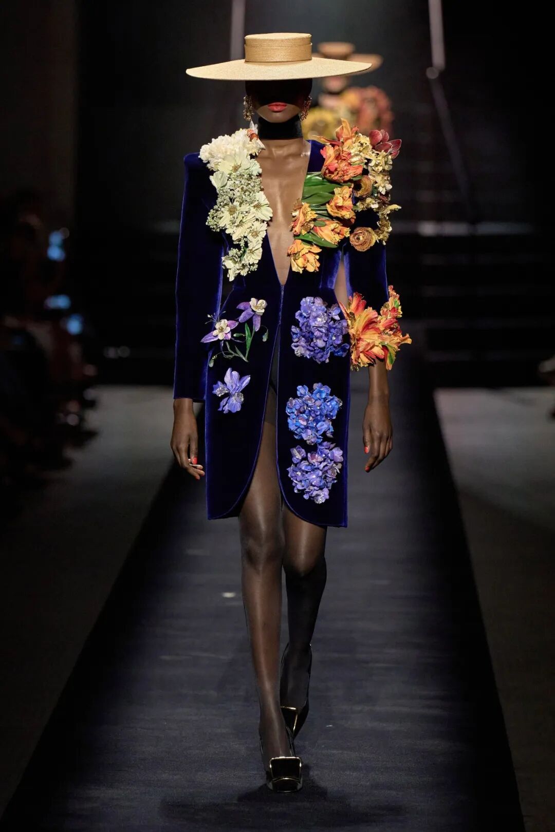 在2019年执掌Schiaparelli后,除了对创始人Elsa Schiaparelli超现实主义灵感的延承,Daniel Roseberry更是将“女性主义”融入到品牌的DNA中。在经历钢铁腹肌、金属或是塑胶外壳人体器官这些“强硬”宣言后,这季的强调更为柔和——鲜花、心脏、紧身衣,这3个“女性关键词”也许是本季极度浪漫的体现。
