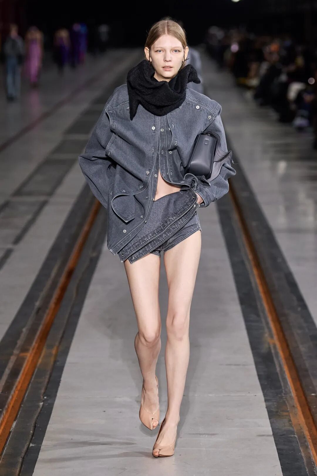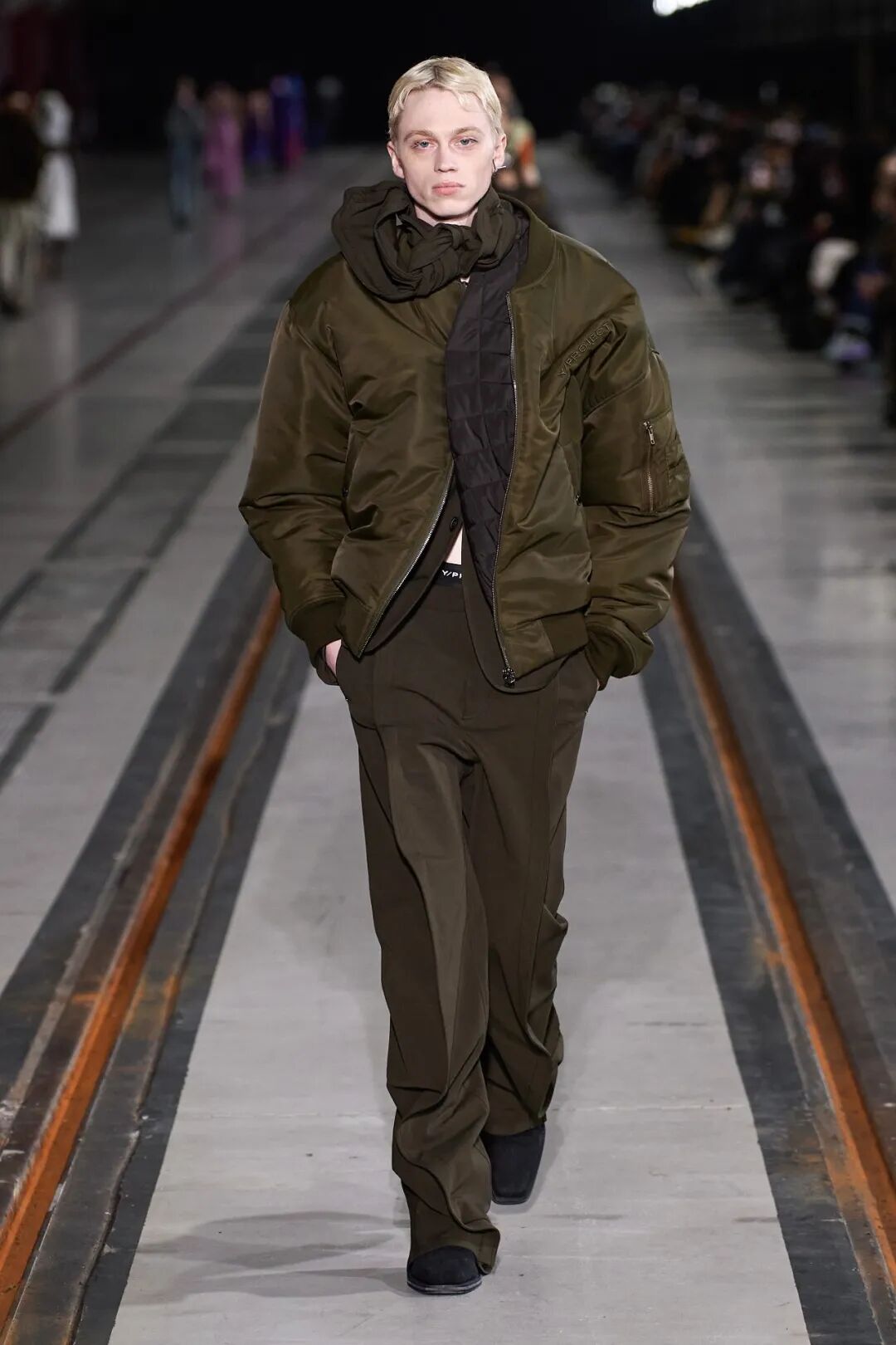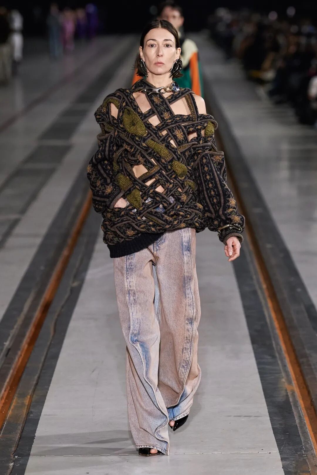 Glenn Martens 作为拿手好戏的解构主义、错位剪裁、万物皆可褶皱已在往季的 Y/Project 中尽数体现。在本季的秀场造型中,也对过去十年的那些招牌设计进行了回顾,无论是牛仔衣、运动服、皮衣还是羊毛大衣,随处可见的解构与褶皱,立体感强烈,风格也依旧夸张前卫。