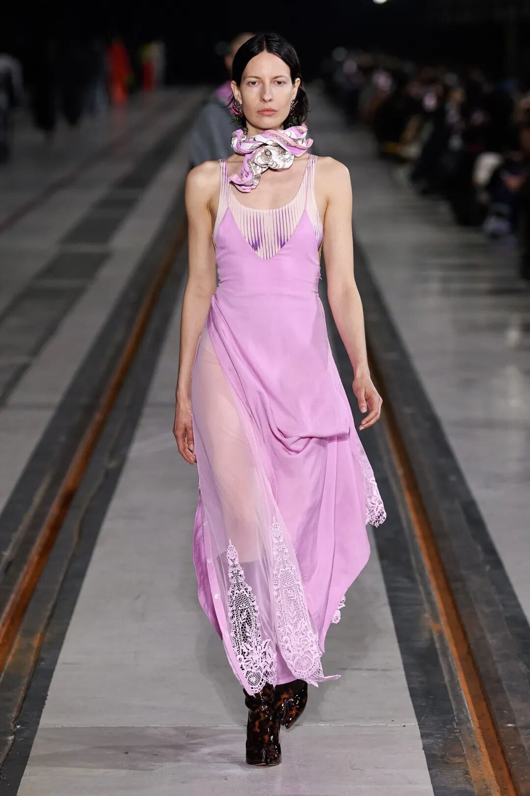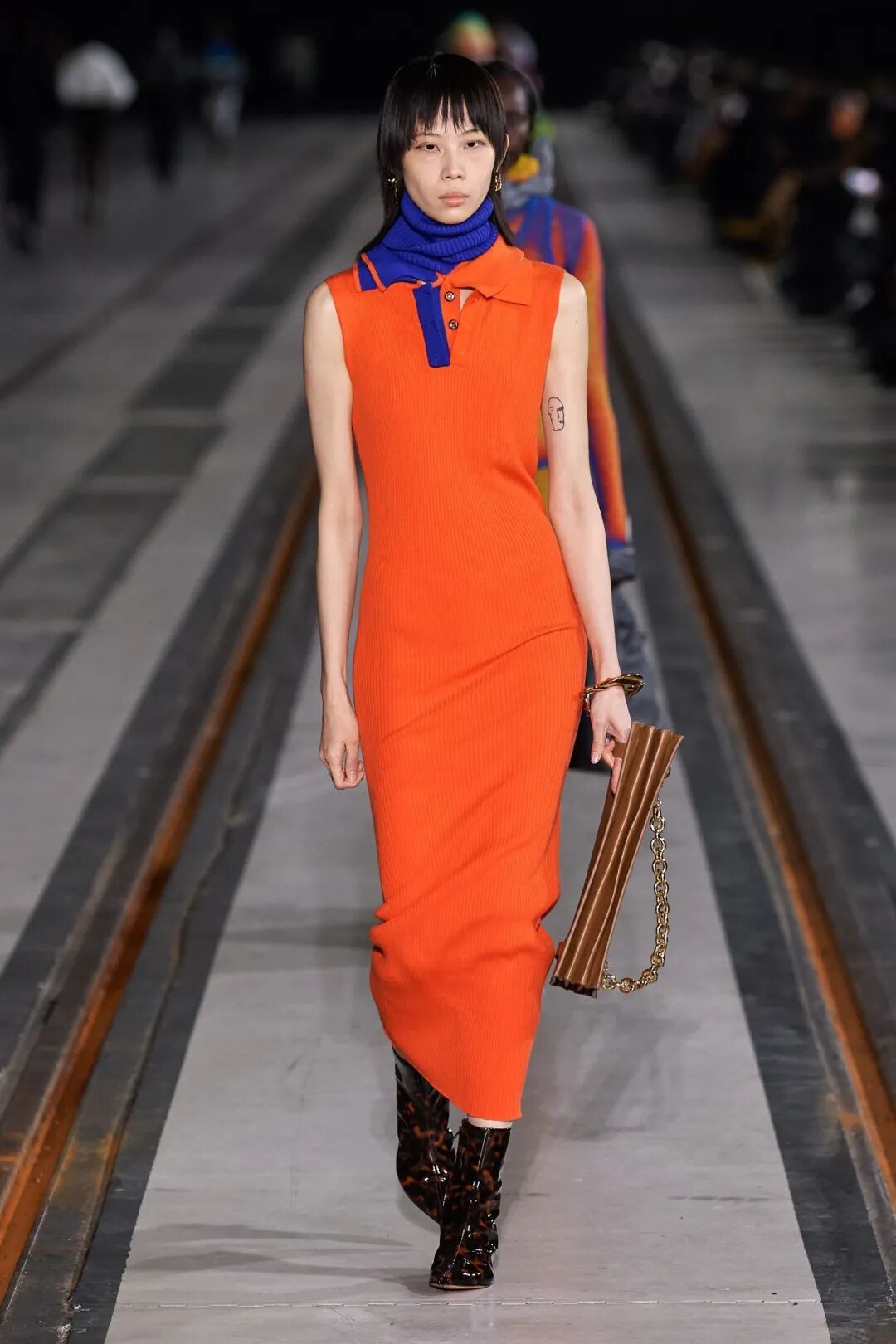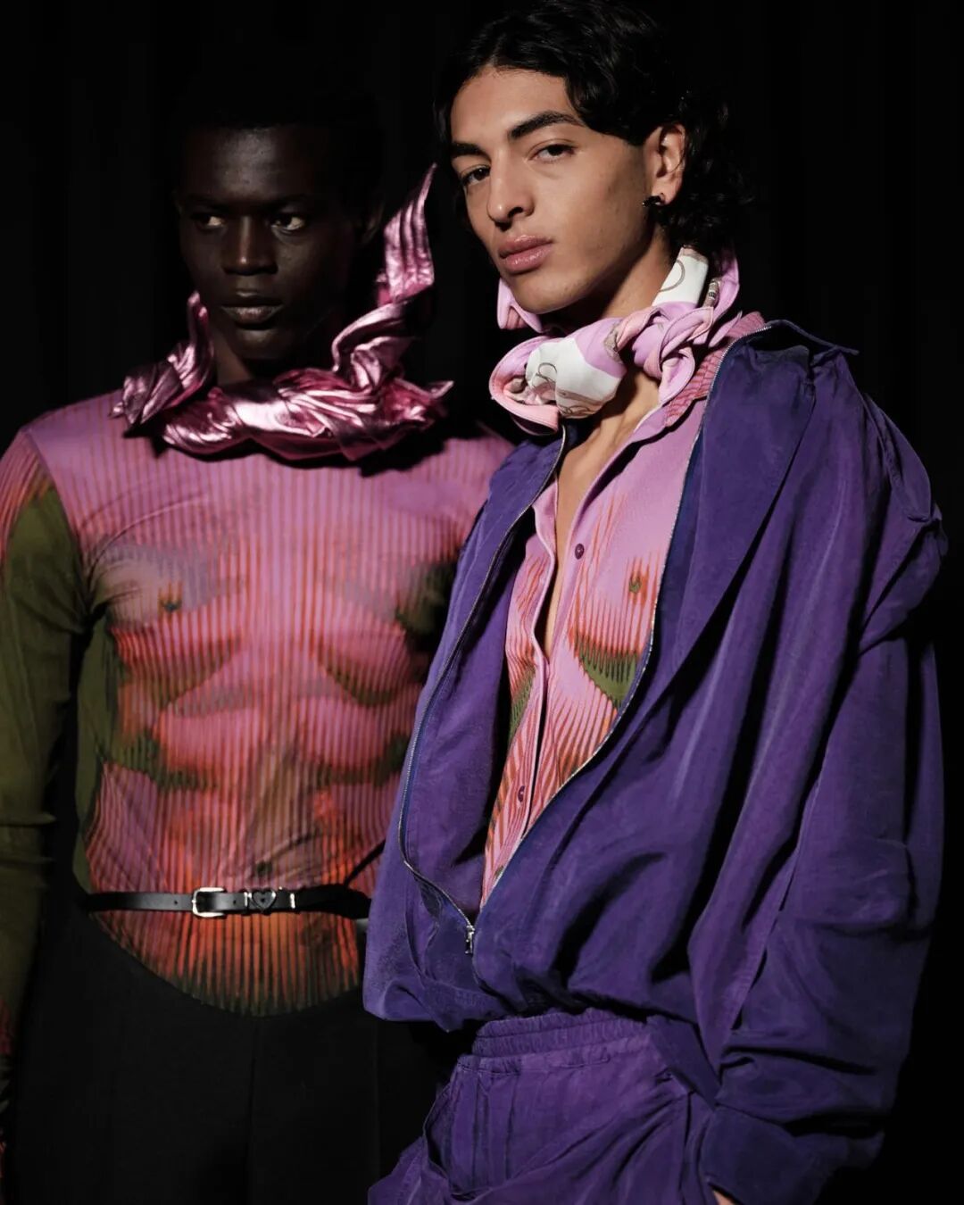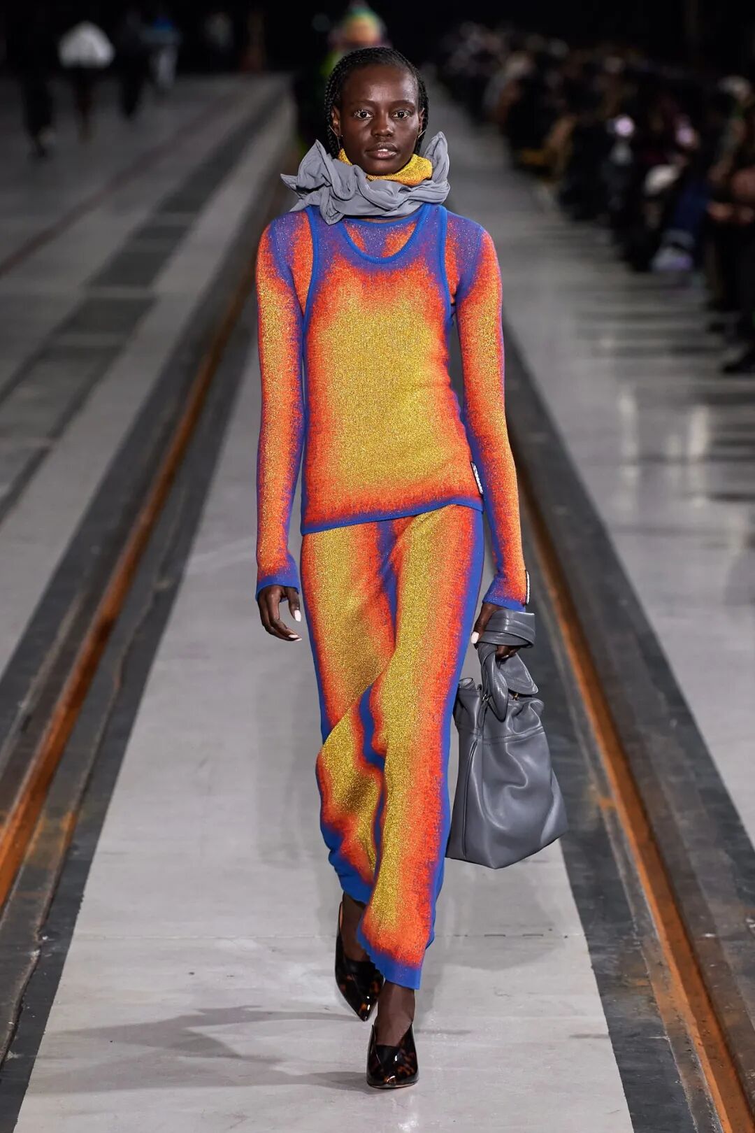 在 Y/Project 一直强调的无性别主义中,Glenn Martens 在本季也抛弃了该主义常用的黑白灰色彩,转向更加热烈的色彩与印花的大胆表达。