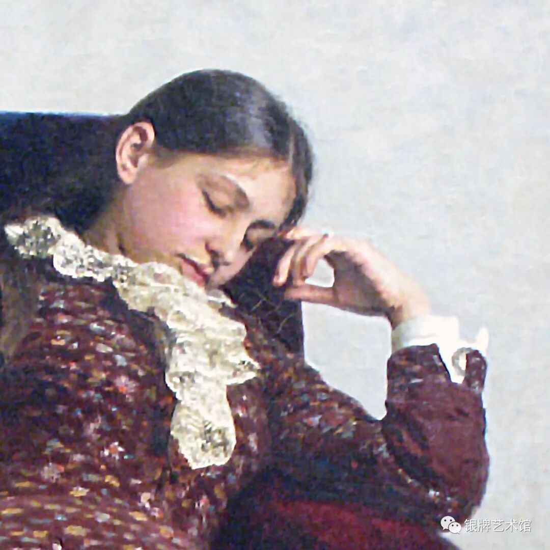 1878年,他参加巡回展览美术协会。代表作品有《伏尔加纤夫》、《意外归来》及《托尔斯泰》等。这幅作品是列宾为妻子维拉·列宾娜所绘的画像。