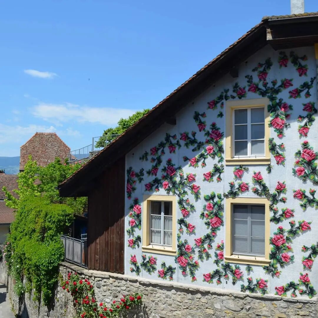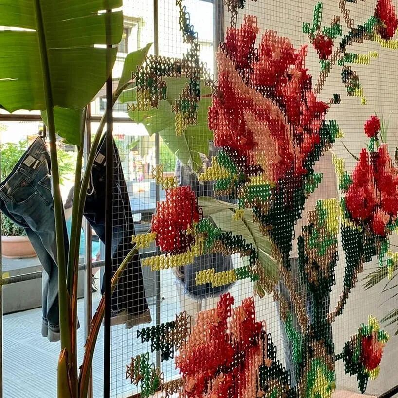 这位才华横溢的艺术家采用传统的十字绣方法,以手为针,以粗绳为线,以金属丝为织物,让大型的刺绣花朵遍布整个城市,点缀着朴素的外墙,并将风化的店面变成美丽的手工作品,图案保留了工艺的精致美感,让人看了直呼美哭了。