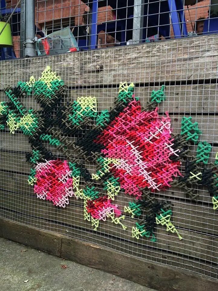 接下来,我们就一起欣赏这位艺术家用十字绣的方式,创作的大型街头艺术吧。