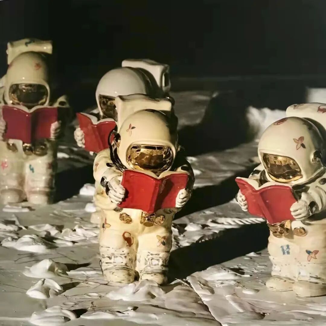 如果说上世纪八十年代中国知识分子有着一种集体性人格的话,那么徐一晖正是被导引而走向自觉与不自觉的艺术旅途。历史与现实的双重内涵,让他在艺术的探索中充满着矛盾与妥协。作为认知的主体,徐一晖无疑有着先验的视界,表现在其直观理性地对西方当代艺术的概念之运用。“小红书”、“金钱至上”、“快餐文化”等一系列繁花似锦的镜像,都在灼热的窑火中被烧炙,一如过往云烟。流泪的孩童和宇航员阅读小红书这两种形态的鲜明冲突感,昭示着一个时代群体对崇高和理想的感伤与质疑。也同时映射出徐一晖对“出世”与“入世”这一矛盾情结的从容和淡漠。他一直试图超越客观真实的世界,以求个人灵魂对形而上的追求,达到“大直若屈,大巧若拙,大辩若讷……”的无为而无不为的处世之道。