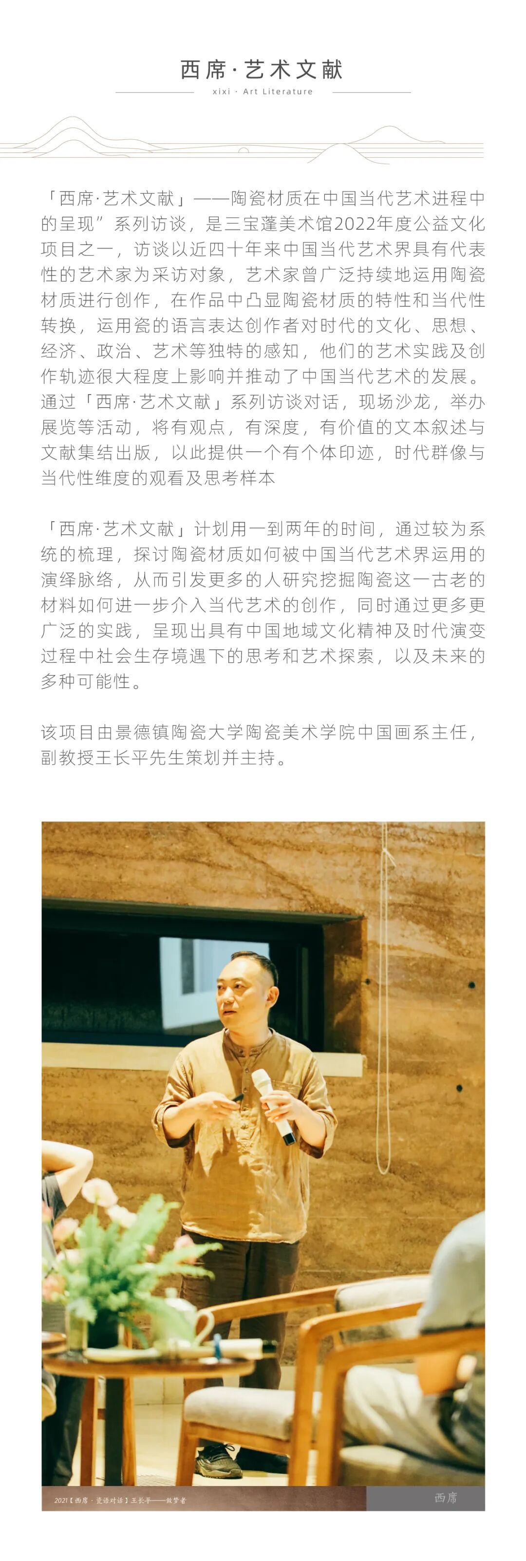 Ps:「西席·艺术文献」计划将在2022年度举行2—4场线下访谈沙龙活动,欢迎各位持续关注官方微信公众号:景德镇三宝蓬艺术聚落,届时我们将提前发布活动信息~欢迎各位报名参加~!