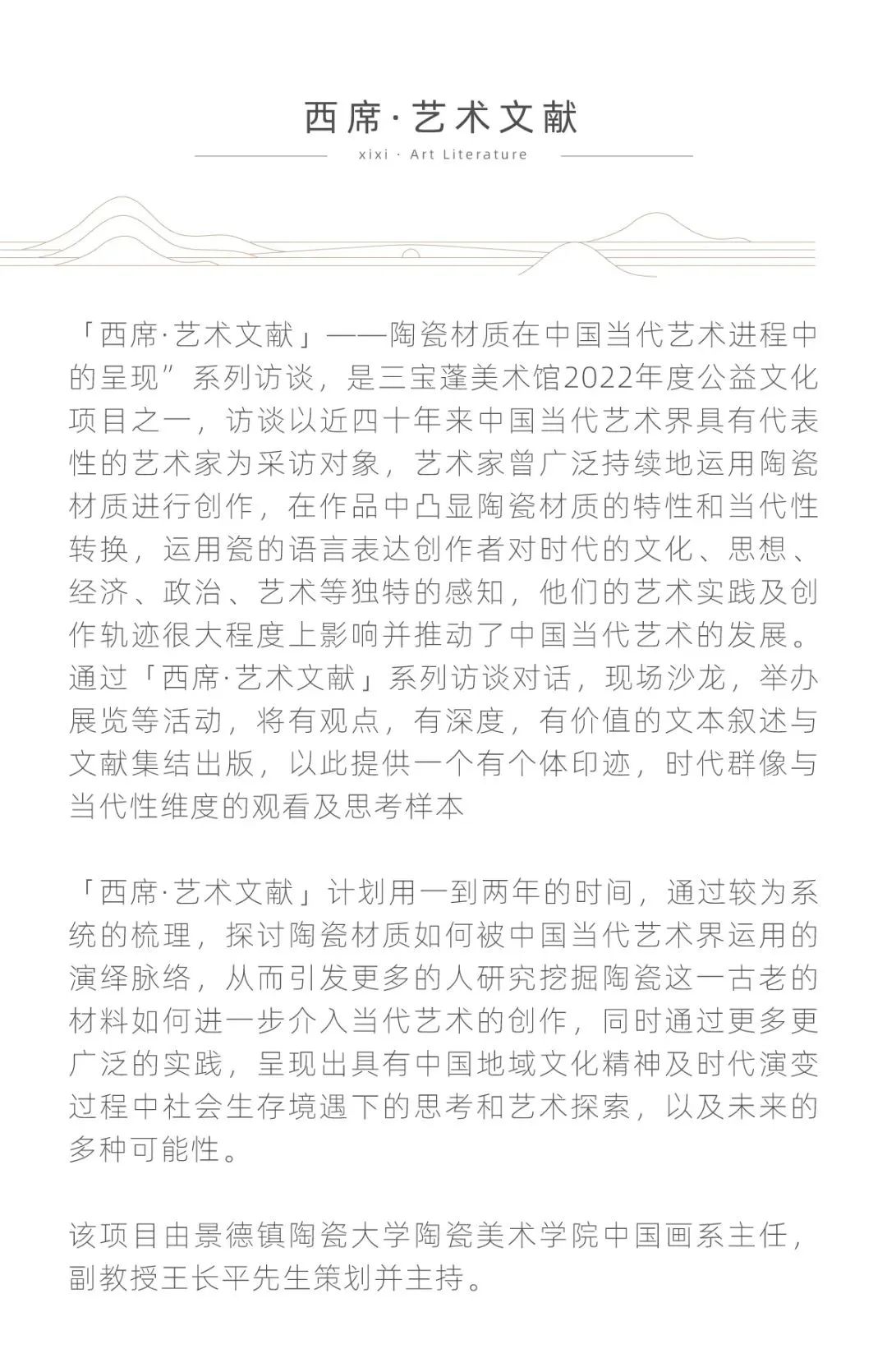 Ps:「西席·艺术文献」计划将在2022年度举行2—4场线下访谈沙龙活动,欢迎各位持续关注官方微信公众号:景德镇三宝蓬艺术聚落,届时我们将提前发布活动信息~欢迎各位报名参加~!