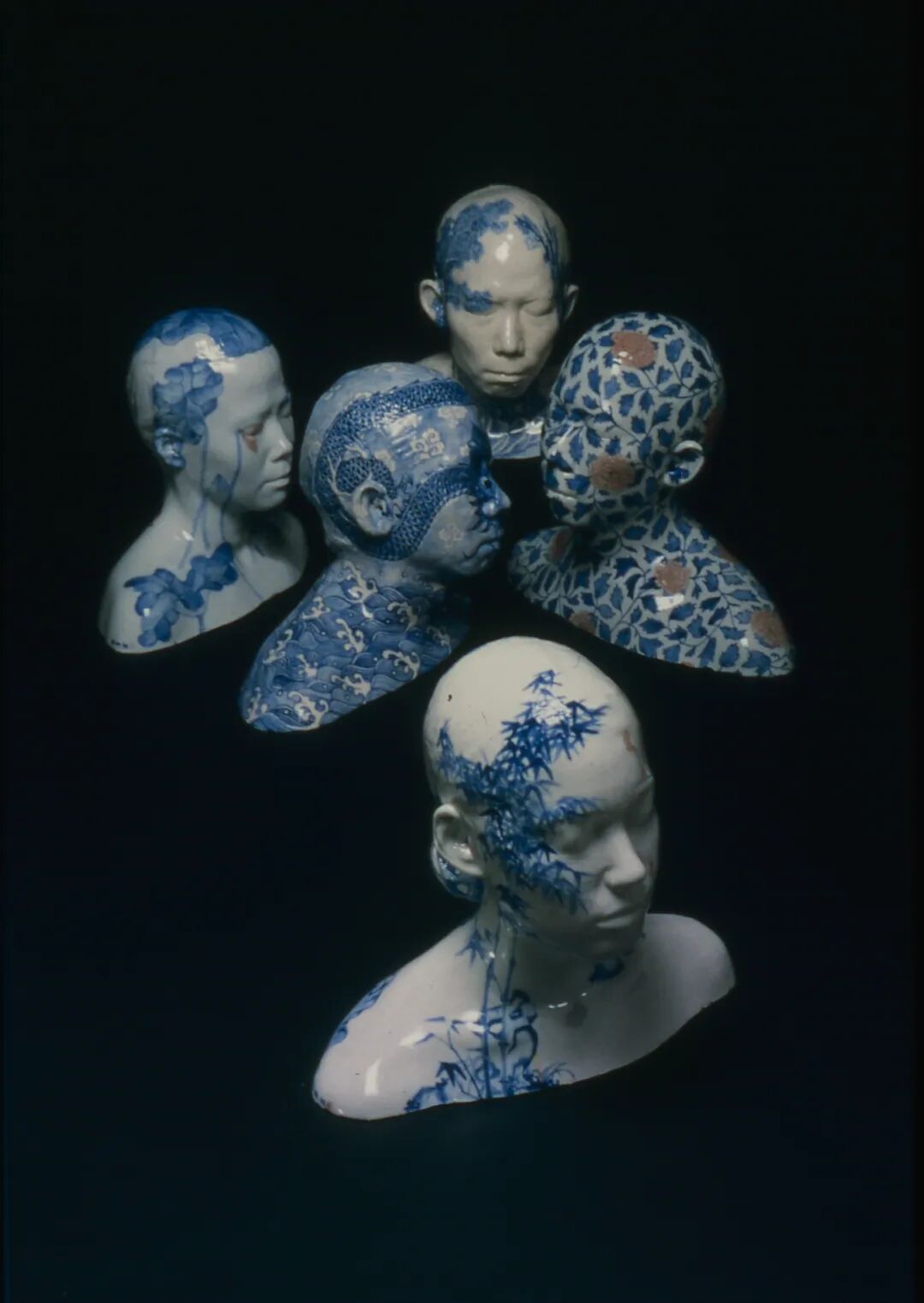 Q2:《China,China》系列陶瓷半身像,将中国传统的山水、纹饰图样与现代雕塑语言结合,作品呈现出一种非常庄严、神秘的冥思状态,这系列作品与您个人的精神内核有着怎样的对应性,在转化为具体作品语言的构建中,是如何思考并实践的?