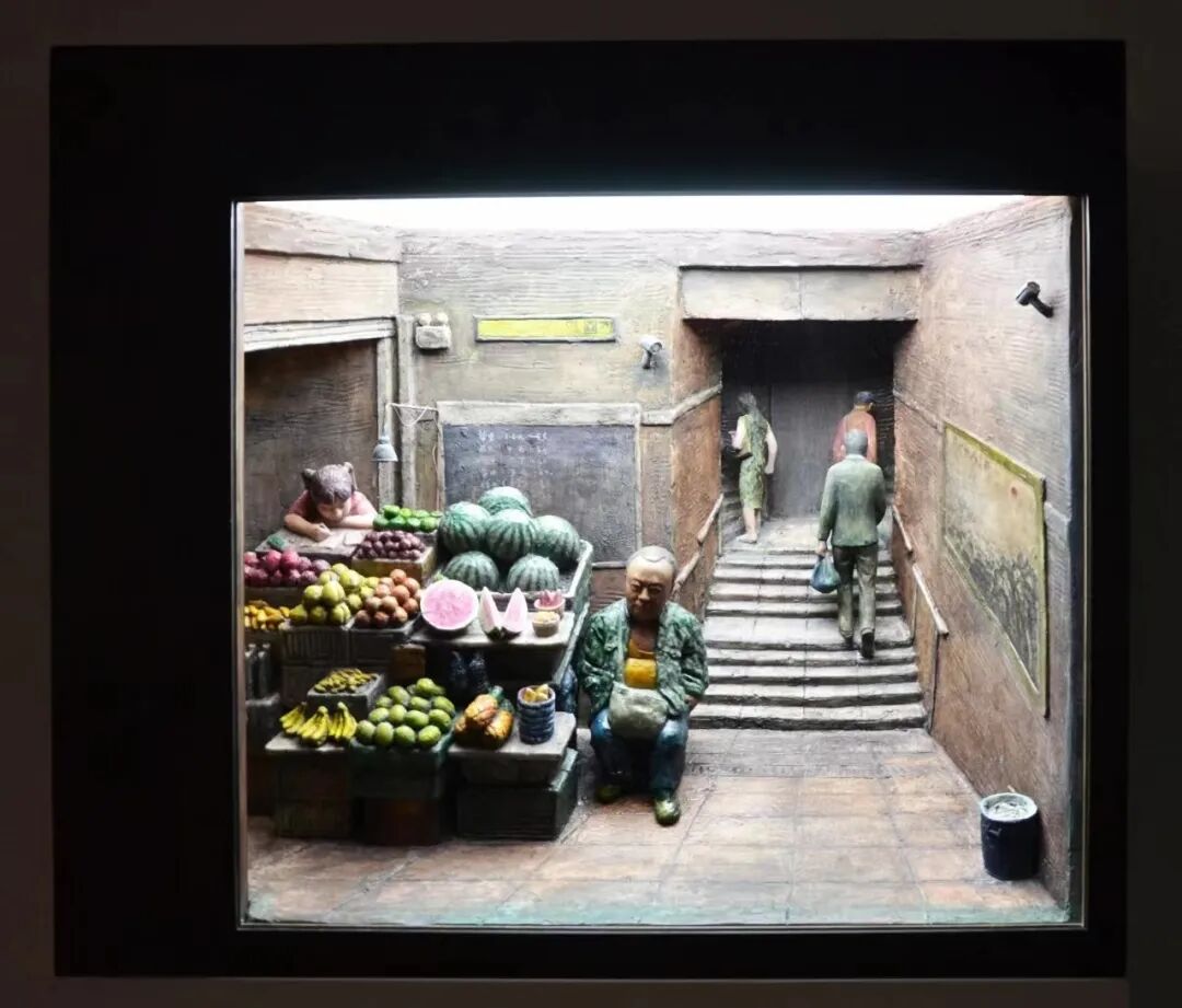 《水果摊》 30cm×60cm×55cm 玻璃钢、木 2019年