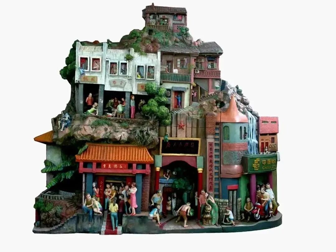 《小山城夜色》材质:玻璃钢尺寸:207x52x95cm 2010年