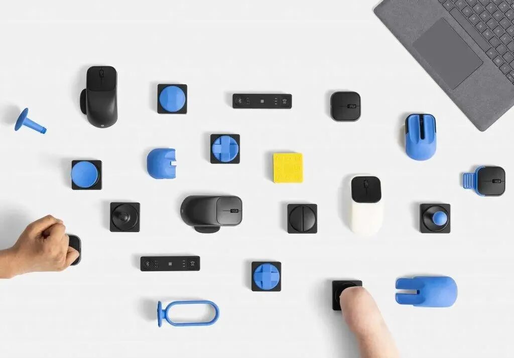 微软最新推出了一款自适应模块化鼠标套件,由鼠标、可连接的尾部、集线器和按钮组成。左右按钮之间有一个滚轮,在底部还有一个光学传感器和蓝牙触发器,移动起来非常轻巧,而扁平的设计,也让残障人士有无限的操控可能。