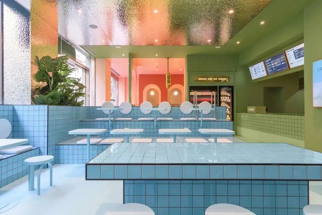 恰到好处的用色,总能令人眼前一亮。比如那些擅长用色彩说话的商业空间,赏心悦目的同时,有没有感觉一股清新的“澡堂子”气息扑面而来?